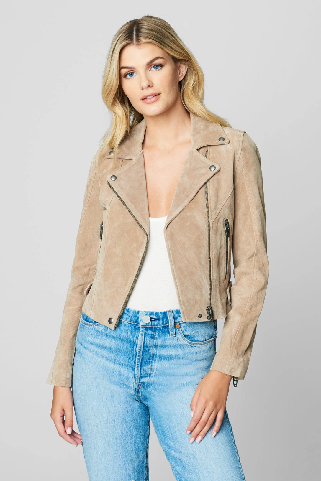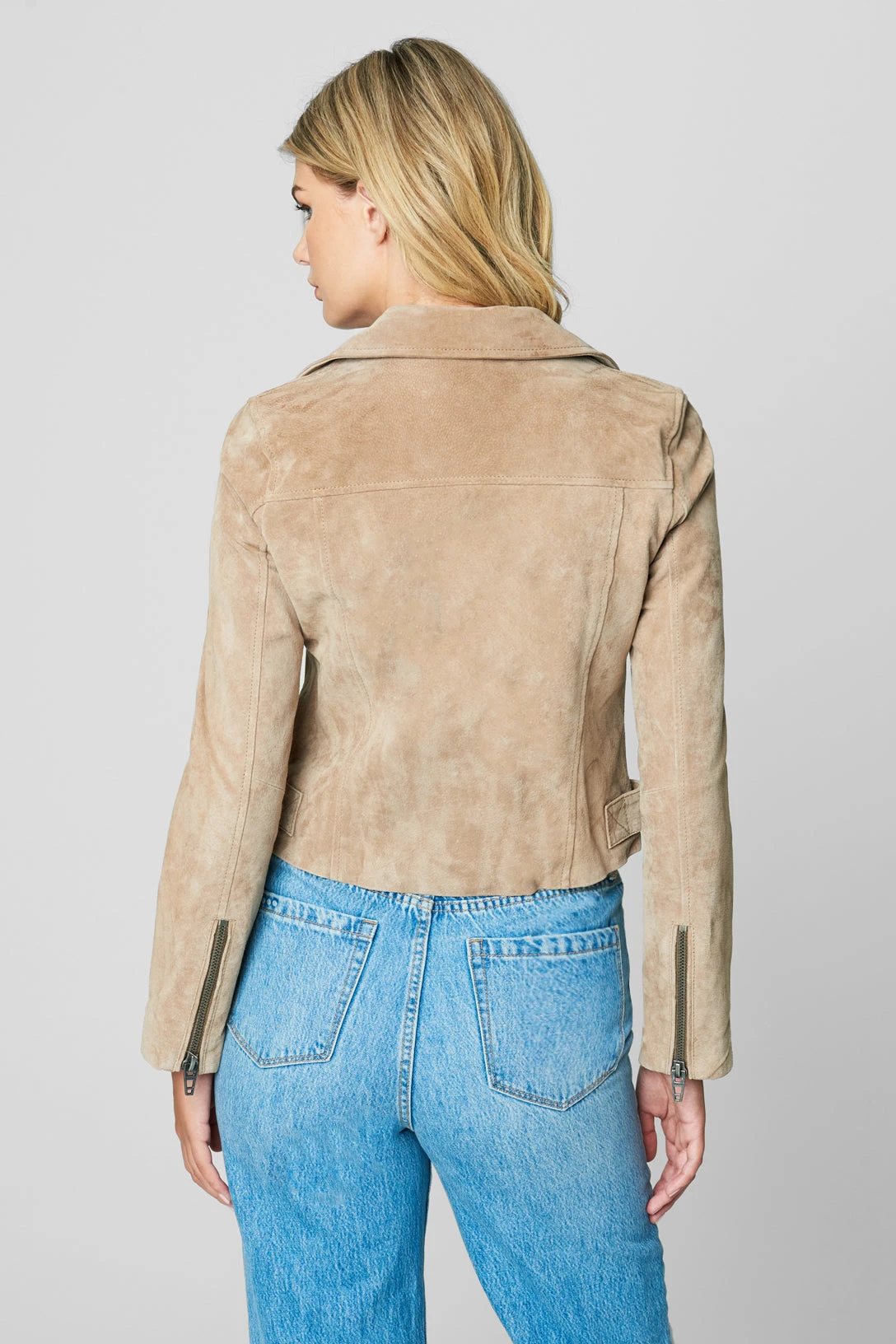 Real Suede Moto Jacket[“Shell: 100% Leather – Lining: 97% Polyester 3% Spandex”][“Dry Clean Recommended Cleaning By A Specialist”][Model Measurements: Height 5’10, Bust 34B, Waist 24.5″, Hips 35.5′][Size on Model: Small]