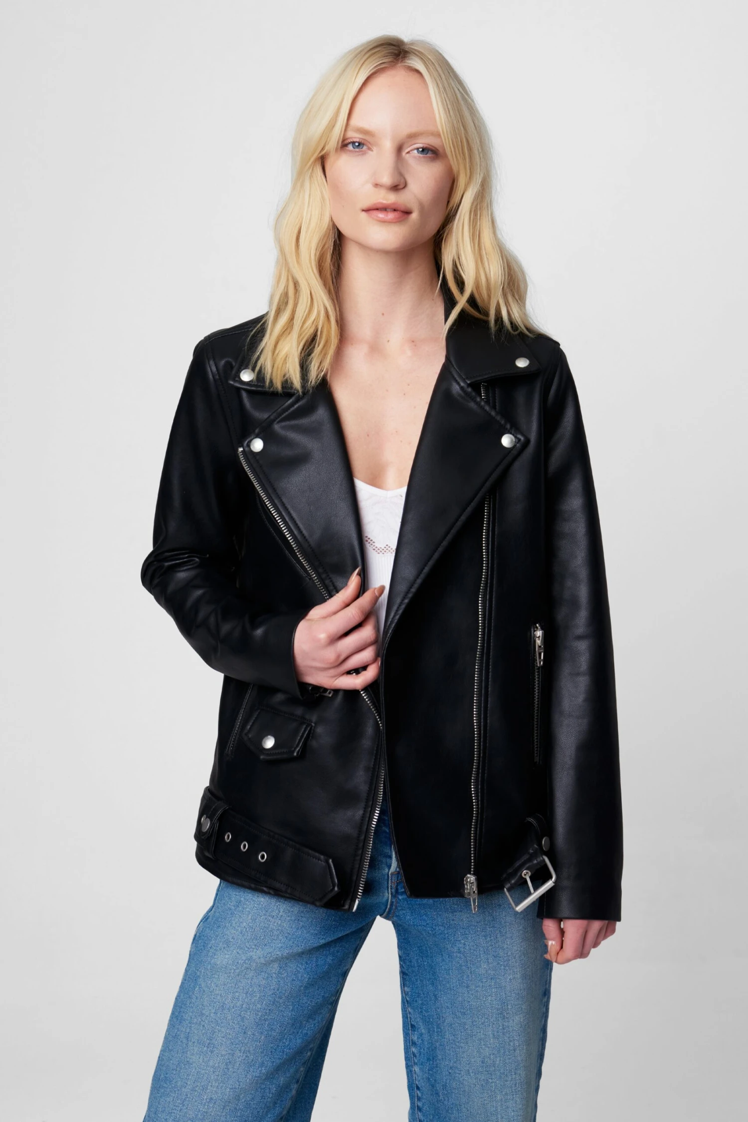 Long Relaxed Vegan Leather Moto Jacket[60% Polyurethane, 40% Viscose][Wipe Shell Clean With Damp Cloth – Do Not Machine Wash – Do Not Bleach – Do Not Tubmle Dry – Do Not Iron – Do Not Dry Clean]