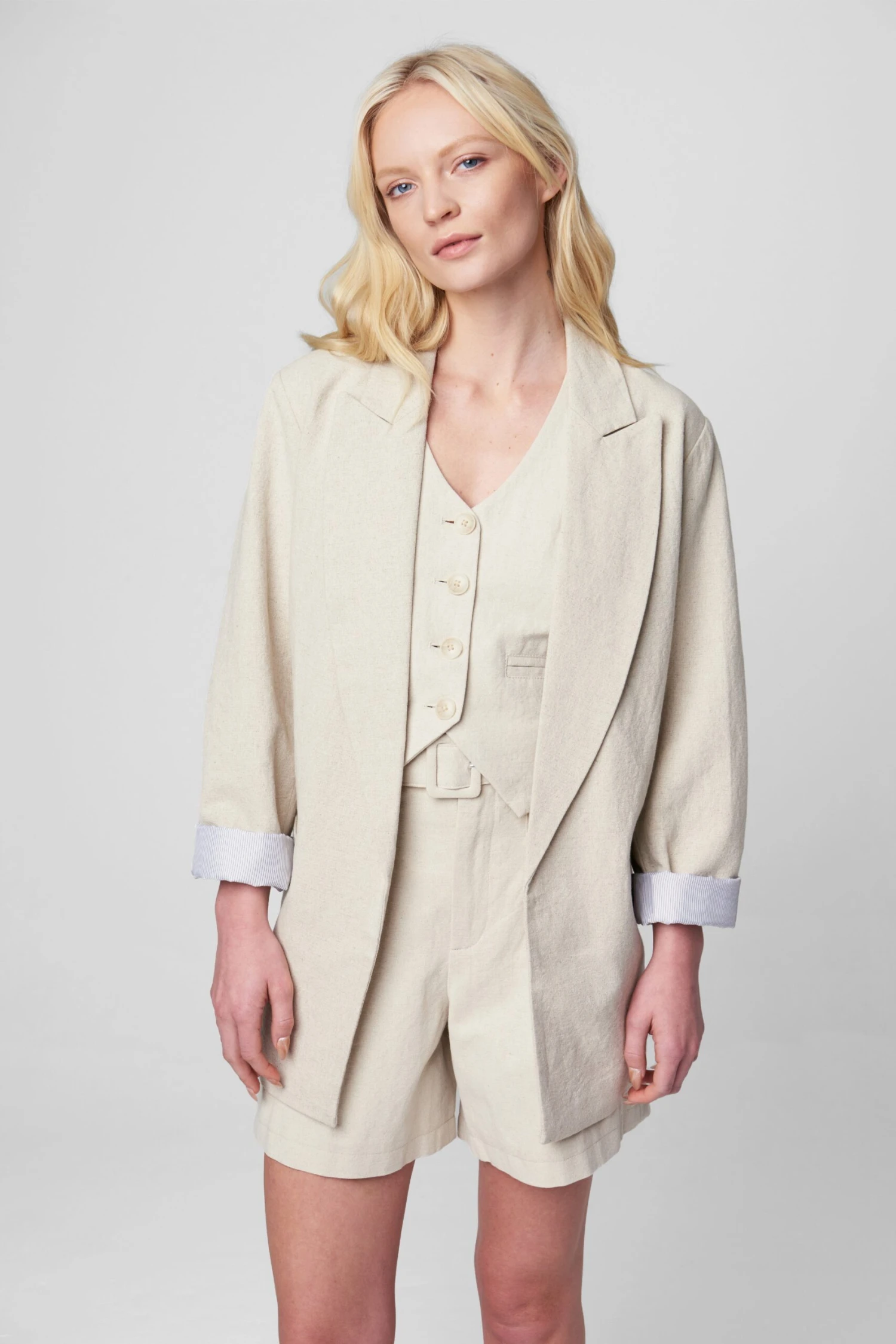 Linen Open Blazer>BrBr