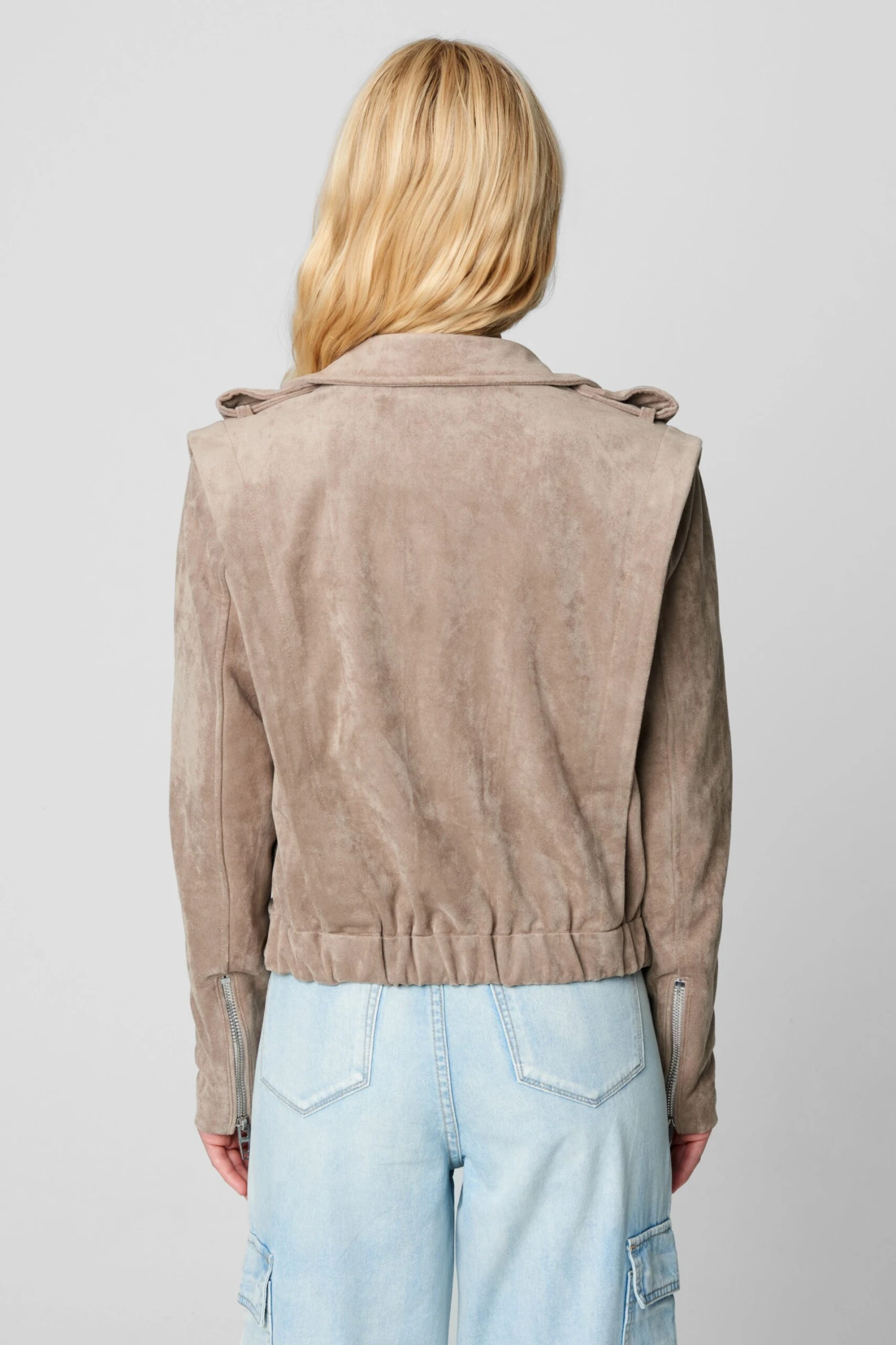 Faux Suede Moto Jacket[90% Polyester, 10% Spandex][Dry Clean Recommended]