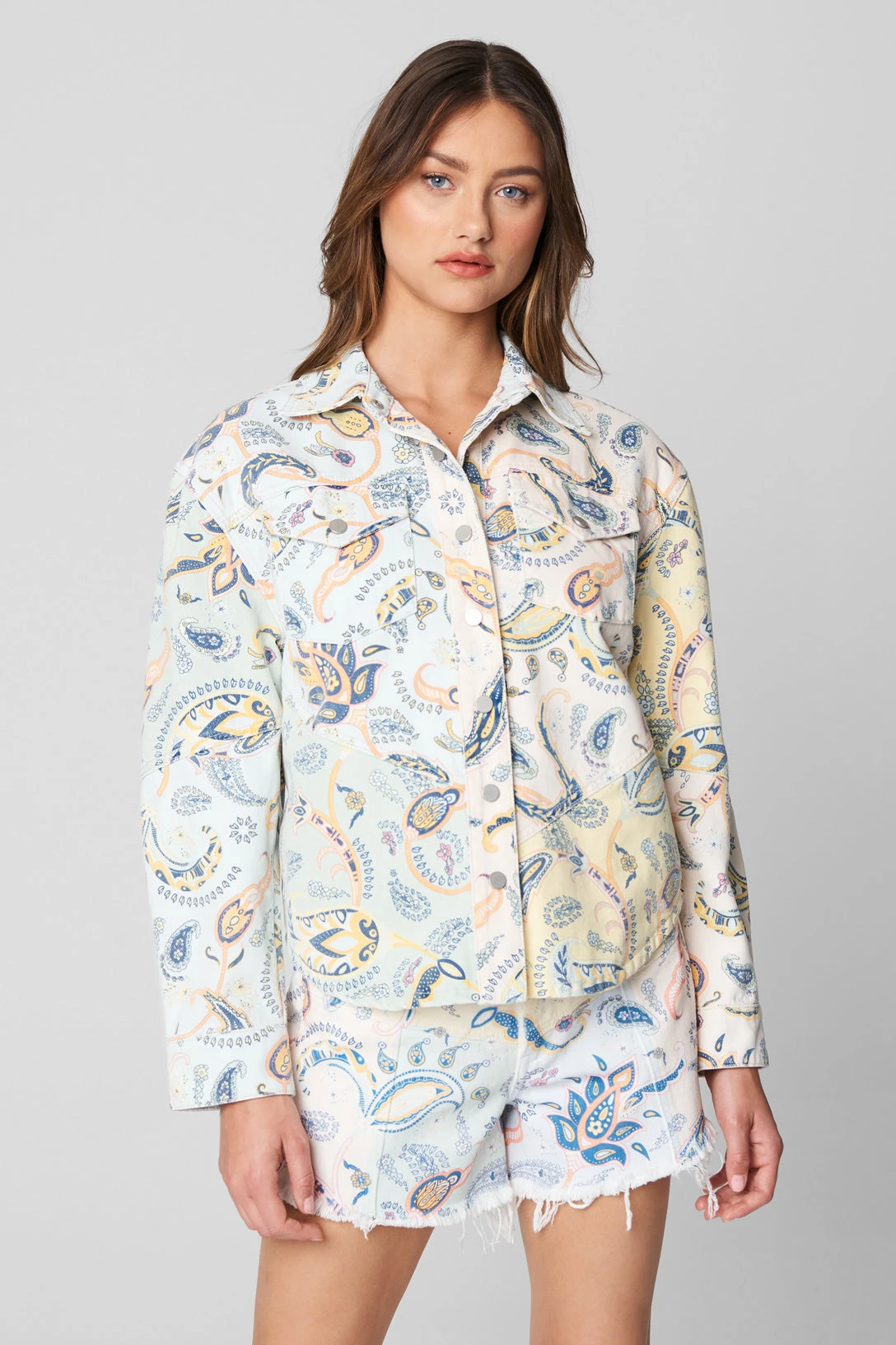 Paisley Print Shacket[100% Cotton][Turn Garment Inside Out Machine Wash Cold With Like Colors Use Gentle Cycle Do Not Bleach Tumble Dry Low Remove Promptly Iron Low If Needed][Model Measurements: Height 5’9″, Waist 24″][Size on Model: Small]