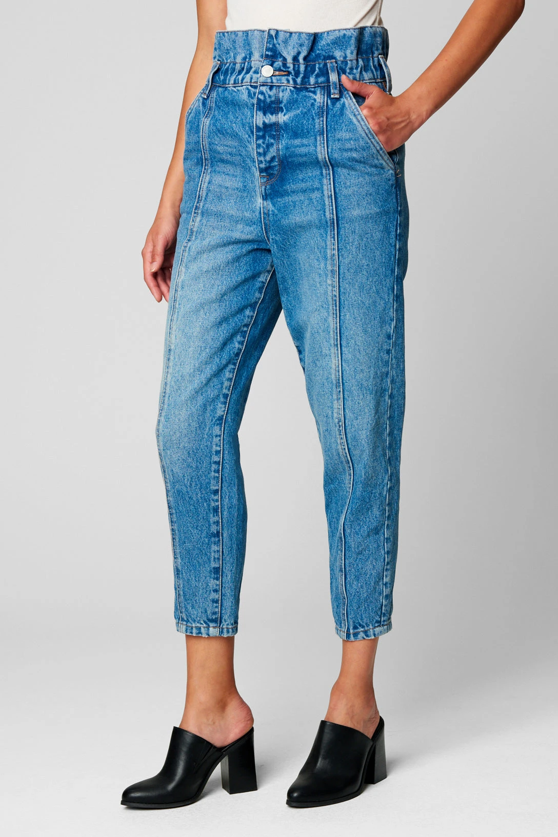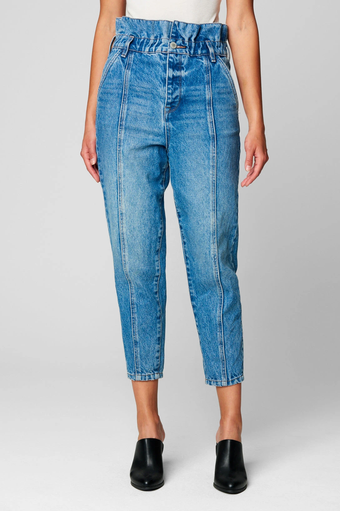 Blue denim relaxed paperbag waist jean[100% Cotton][MACHINE WASH COLD WITH LIKE COLORS, DO NOT BLEACH, TUMBLE DRY LOW, LOW IRON][Model Measurements: Height 5’9″, Waist 24”, Hip 34 1/2”][Size on Model: 28”]