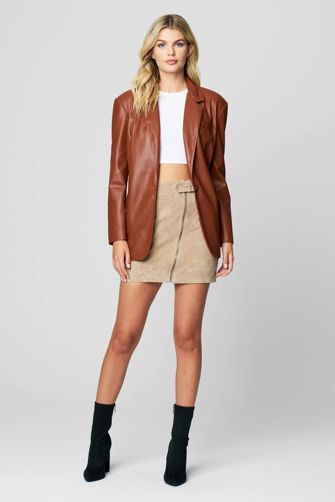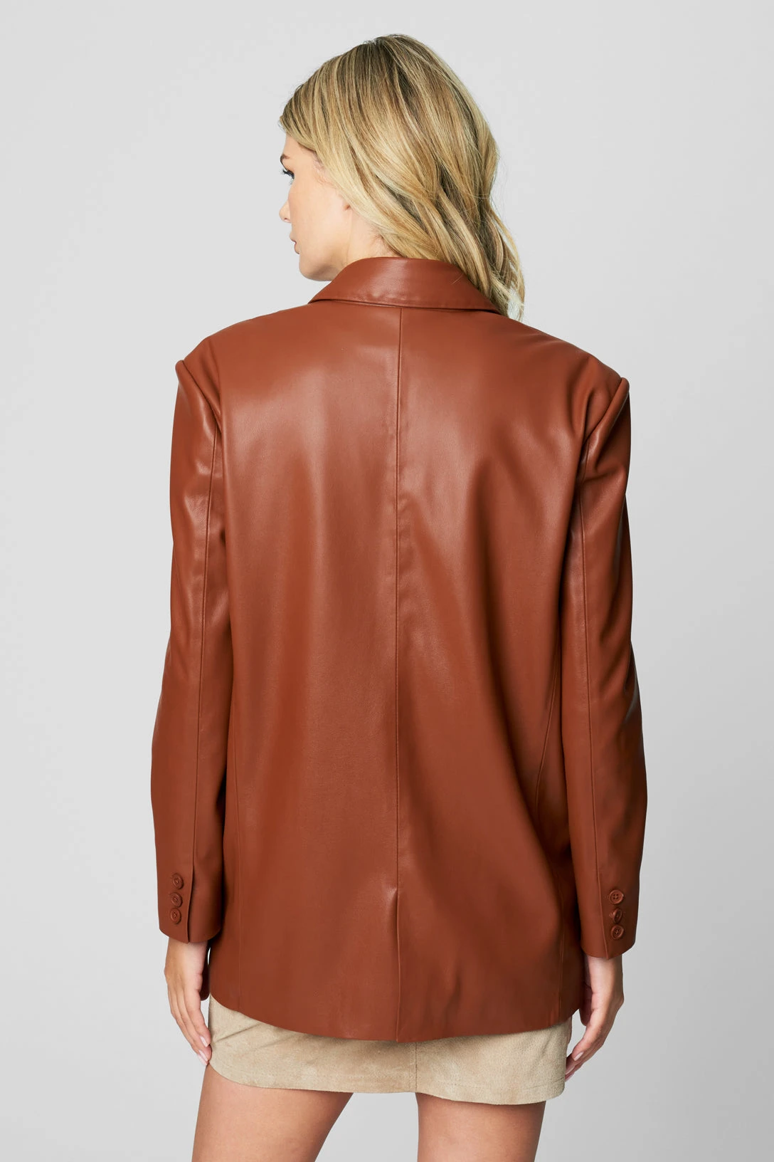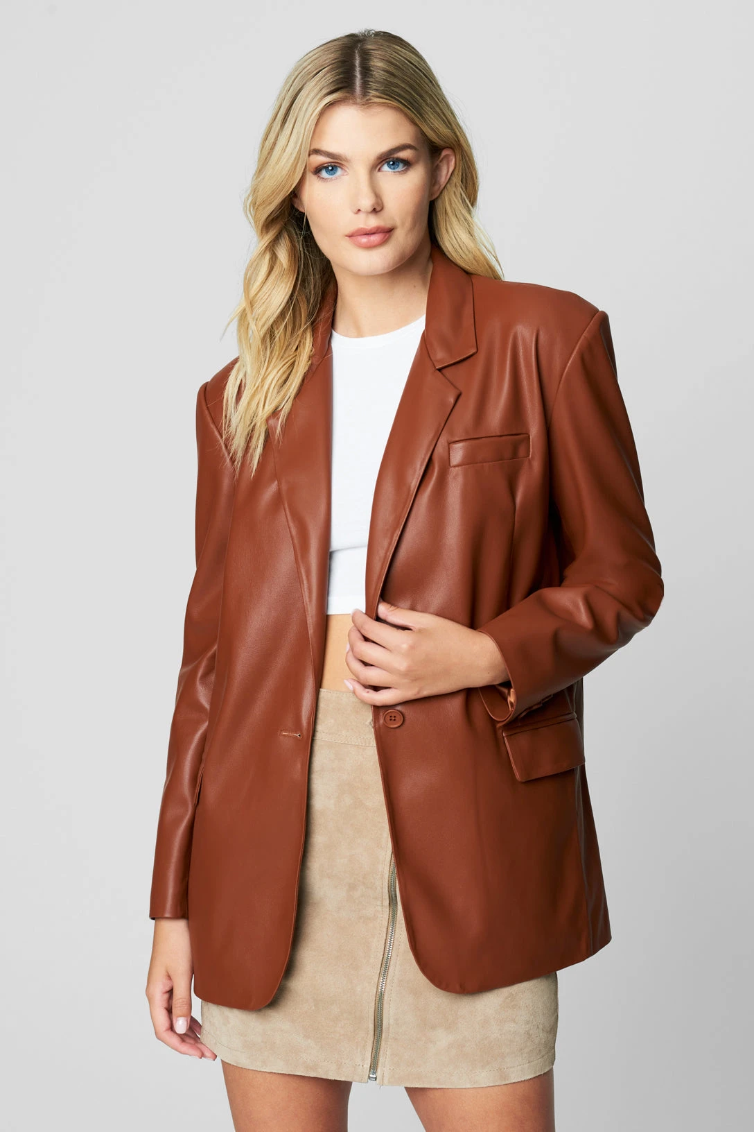 Oversized Blazer[“60% Polyurethane 40% Polyester, Lining: 97% Polyester 3% Spandex”][“Wipe Shell Clean With Damp Cloth Do Not Machine Wash Do Not Bleach Do Not Tumble Dry Do Not Iron Do Not Dry Clean”][Model Measurements: Height 5’10, Bust 34B, Waist 24.5″, Hips 35.5′][Size on Model: Small]