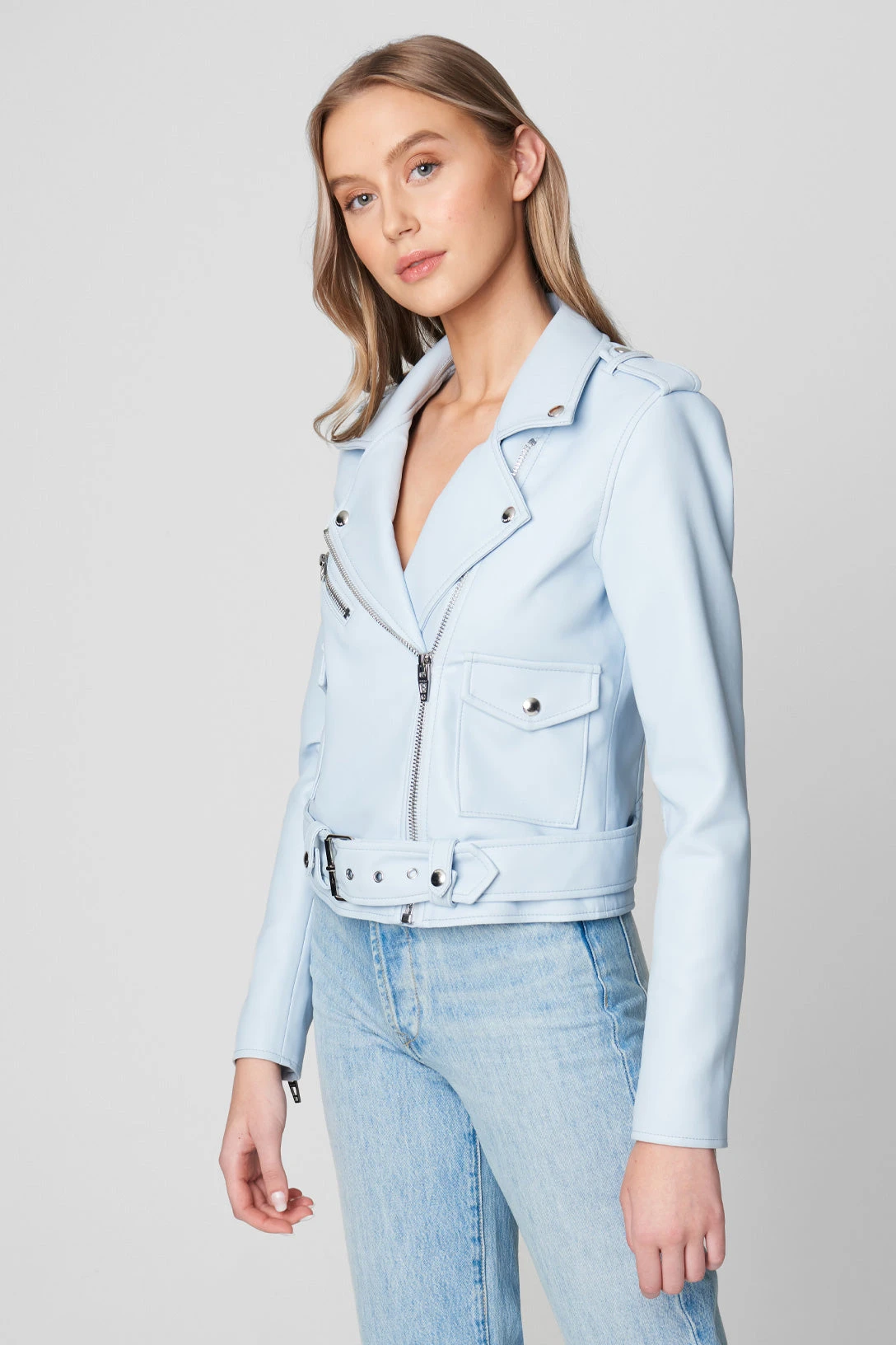 Pu Moto with attached belt[Shell 60 Polyurethane 40 Viscose Lining 97 Polyester 3 Spandex][Wipe Shell Clean With Damp Cloth Do Not Machine Wash Do Not Bleach Do Not Tumble Dry Do Not Iron Do Not Dry Clean][Model Measurements: Height 5′ 9″ Waist 24″][Size on Model: Small]