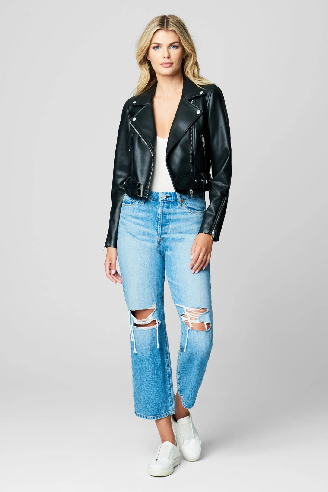 Belted Vegan leather Moto Jacket[“60% Polyurethane 40% Viscose, Lining: 97% Polyester 3% Spandex”][“Wipe Clean With Damp Cloth Do Not Machine Wash Do Not Bleach Do Not Tumble Dry Do Not Iron Do Not Dry Clean”][Model Measurements: Height 5’10, Bust 34B, Waist 24.5″, Hips 35.5′][Size on Model: Small]