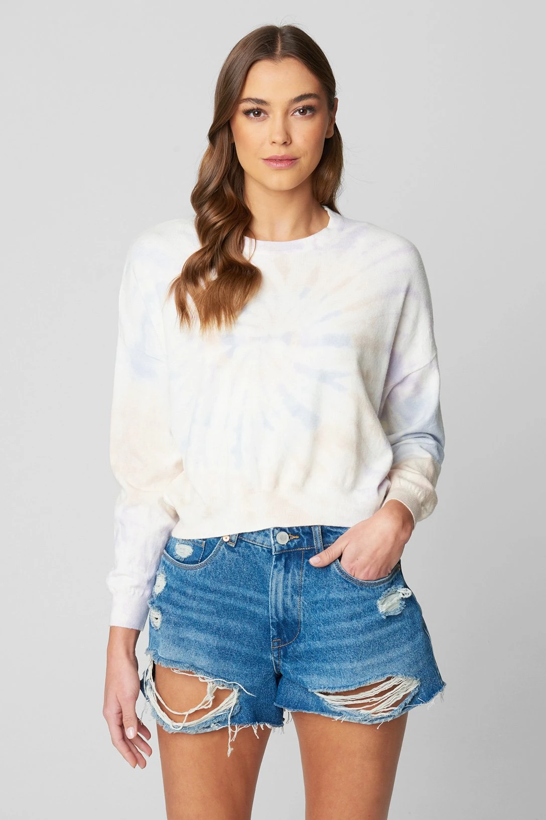 Pastel rainbow tie dye long sleeve crewneck sweater[50% VISCOSE 27% POLYESTER 23% NYLON][HAND WASH COLD, DO NOT BLEACH, LAY FLAT TO DRY, LOW IRON IF NEEDED][Model Measurements: Height 5’10”, Bust 32″, Waist 24 1/2″, Hips 35″][Size on Model: Small]