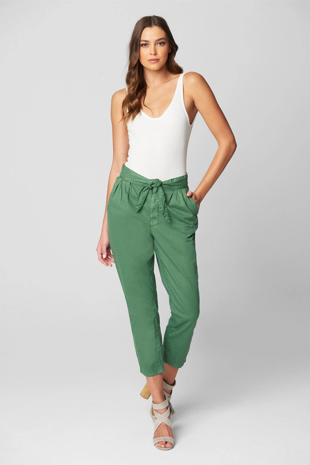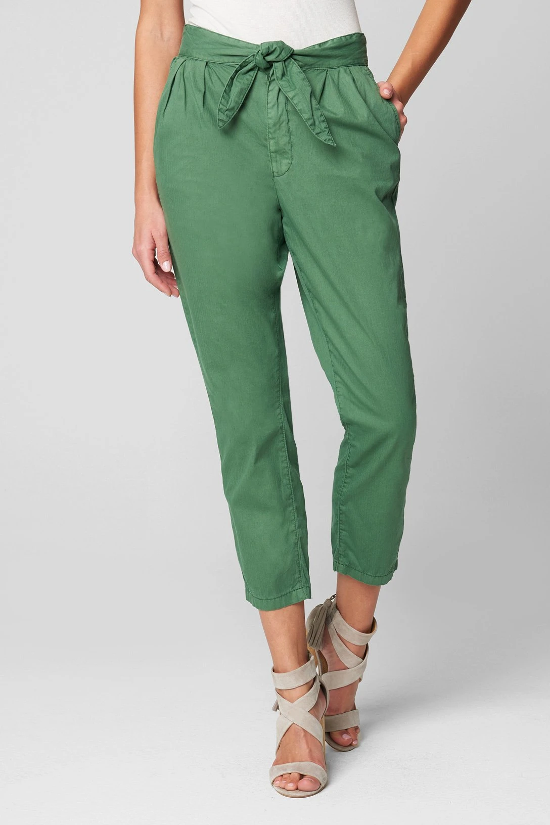 Green casual herringbone pant with self tie belt[100% COTTON][MACHINE WASH COLD WITH LIKE COLORS, USE GENTLE CYCLE, DO NOT BLEACH, TUMBLE DRY LOW OR HANG DRY, LOW IRON IF NEEDED][Model Measurements: Height 5’10”, Bust 32″, Waist 24 1/2″, Hips 35″][Size on Model: 28”]
