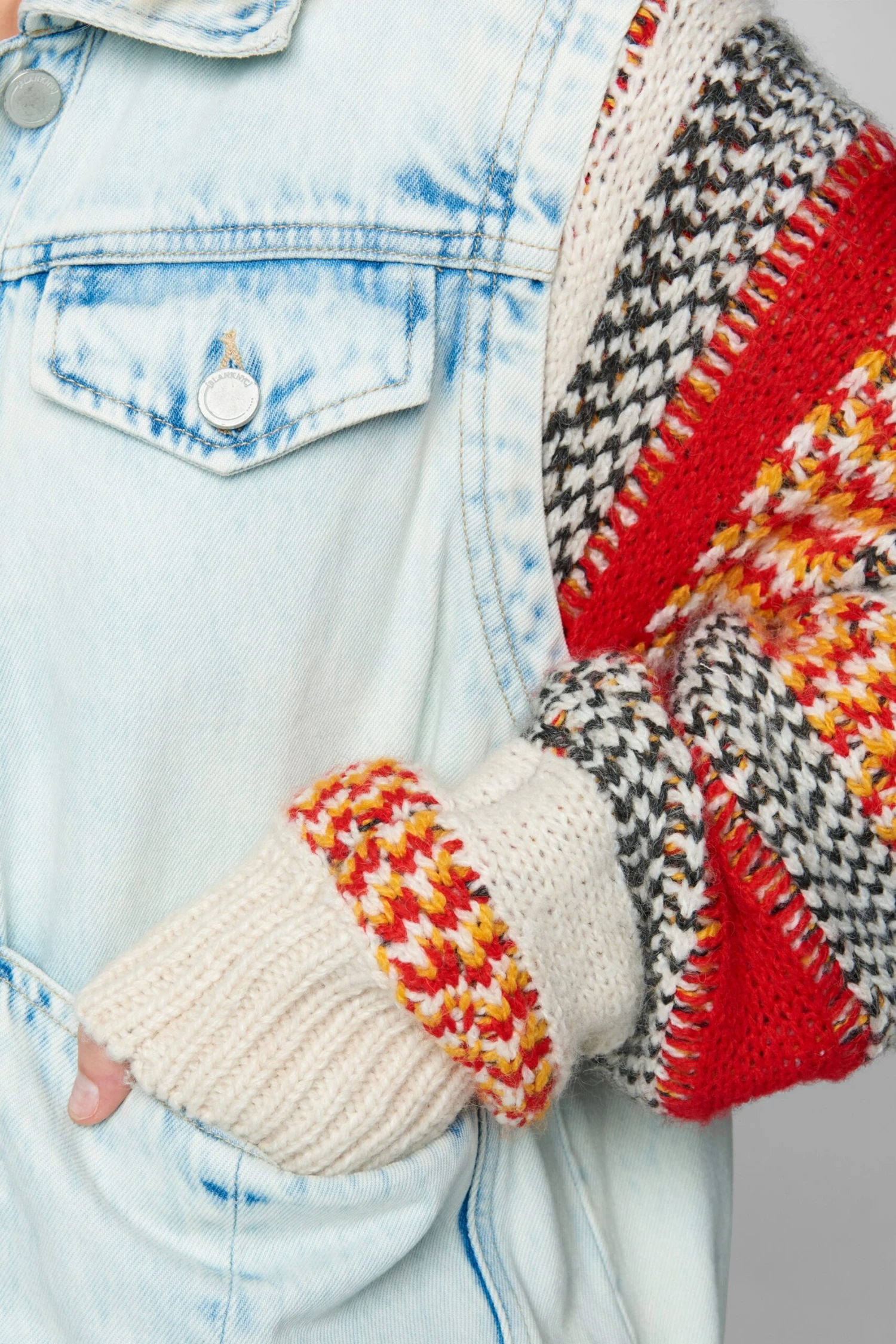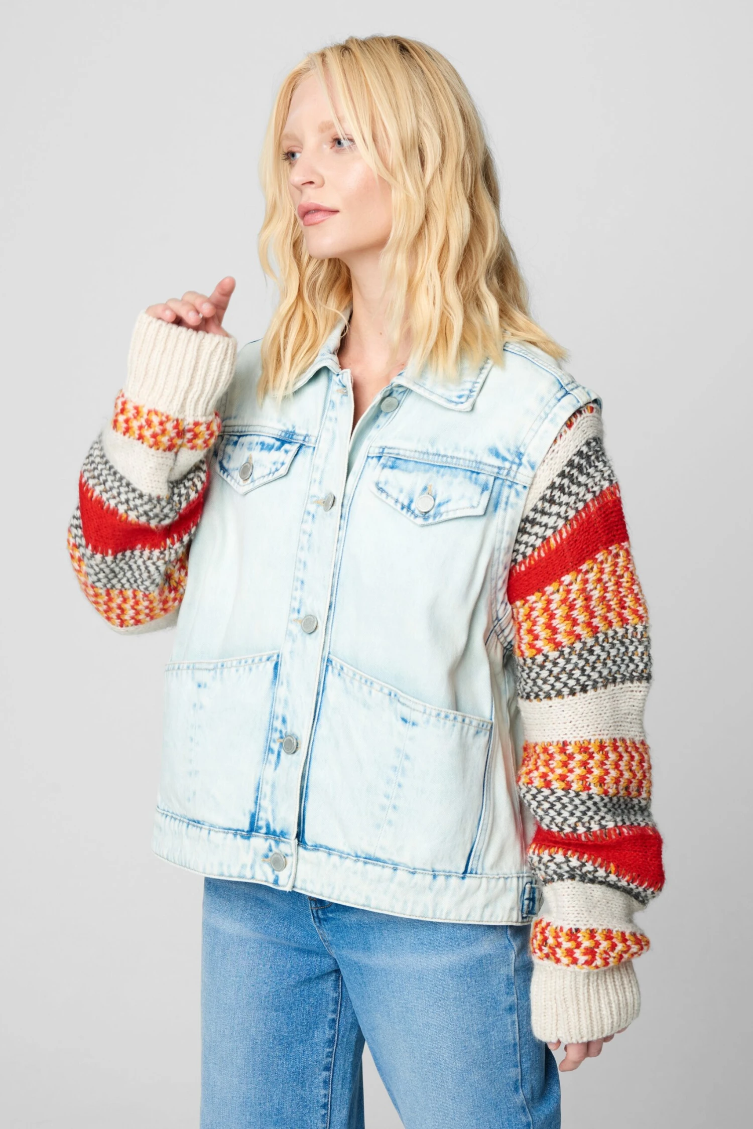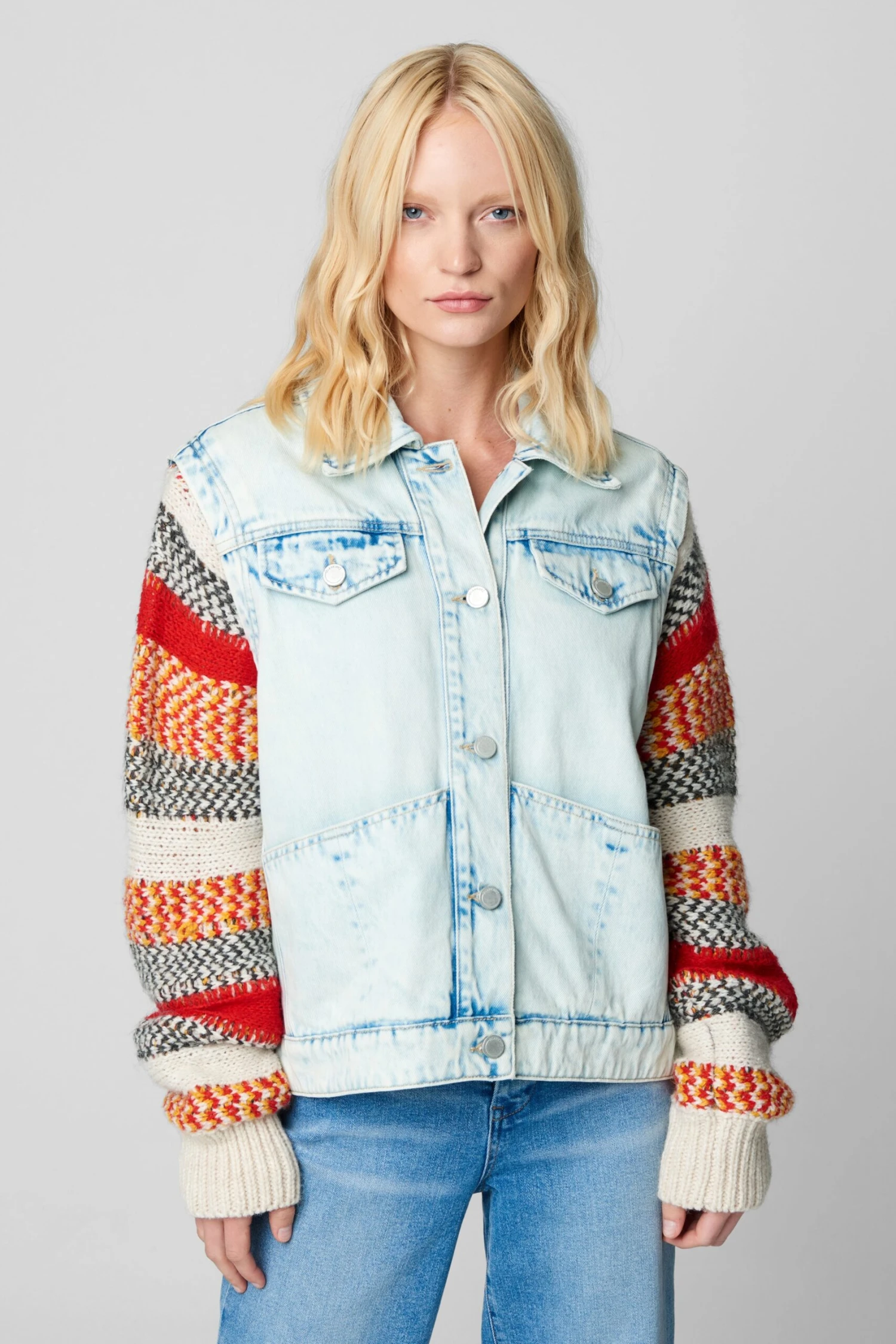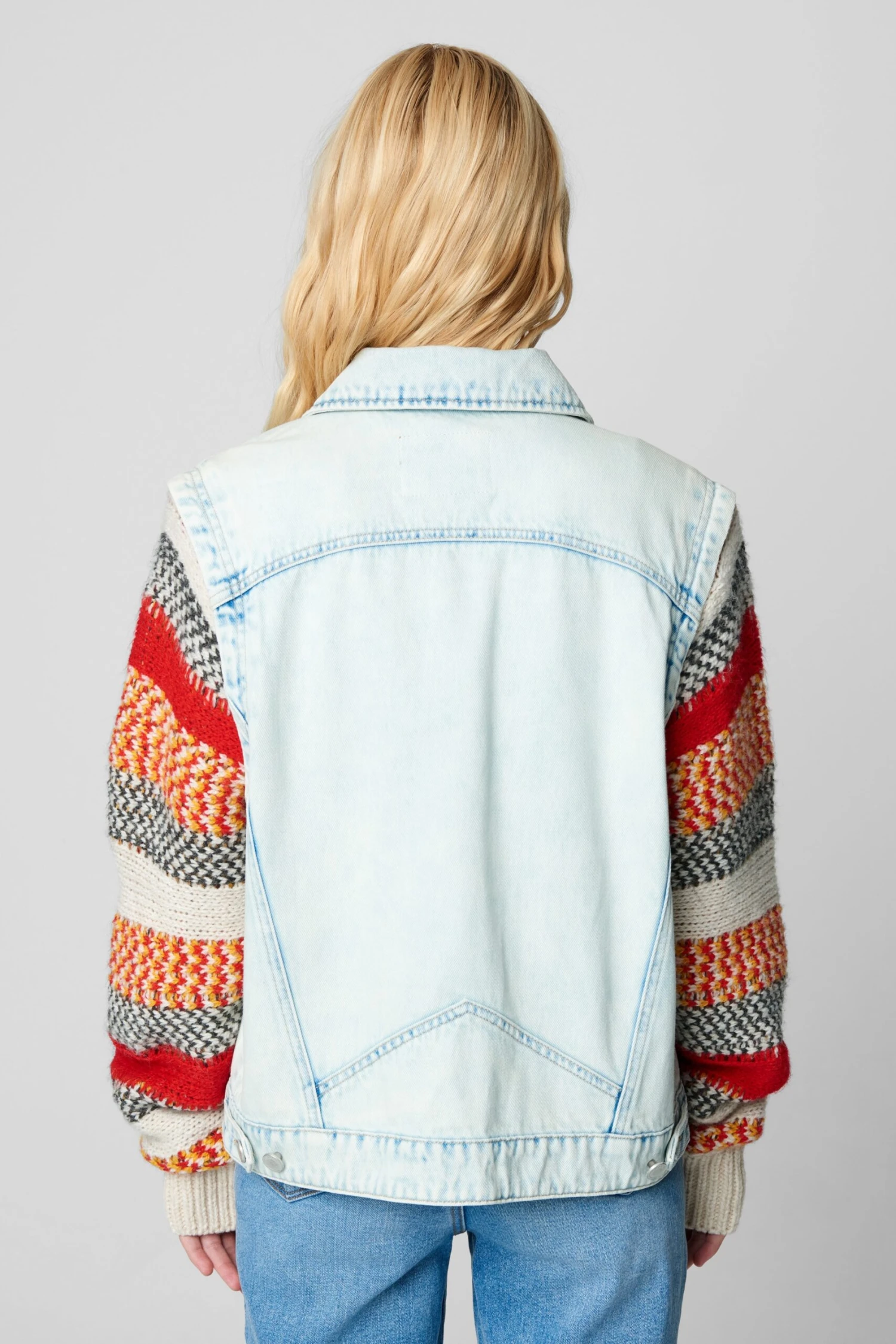 Colorblock Stripes Knit & Denim Trucker[100% Cotton][Hand Wash Cold]