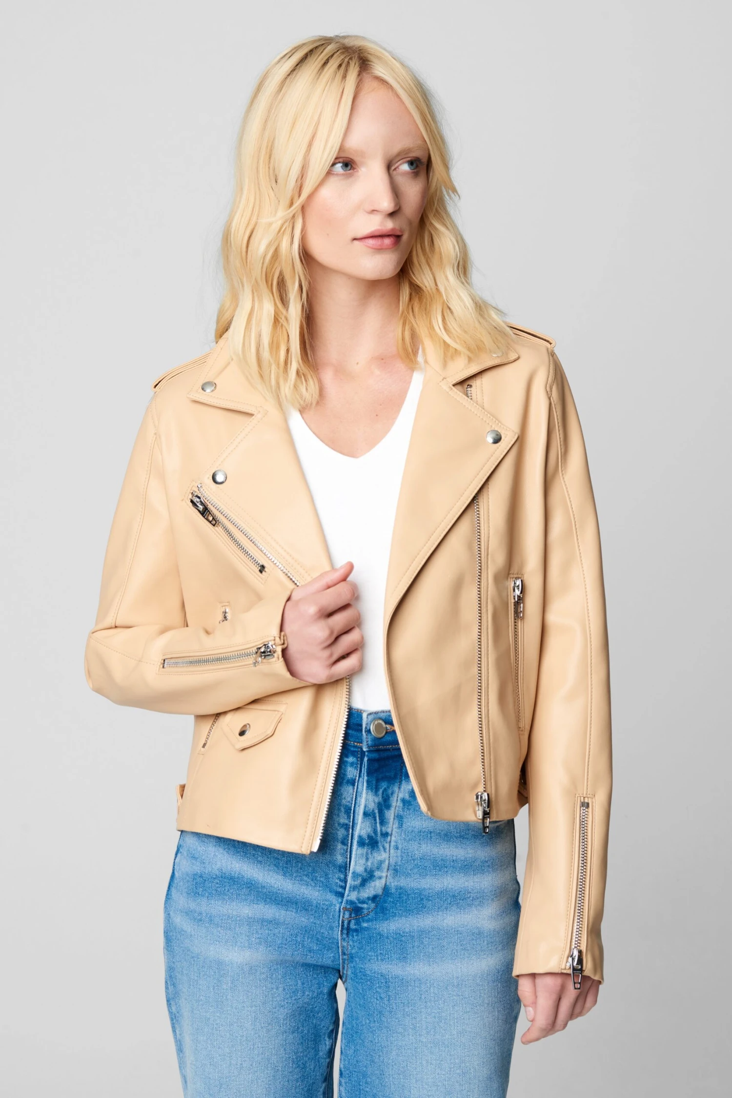 Vegan Leather Semi Fit Moto Jacket with Quilting Stitch[Shell: 60% Polyurethane, 40% Viscose – Lining: 97% Polyester, 3% Spandex][Wipe Shell Clean With Damp Cloth]