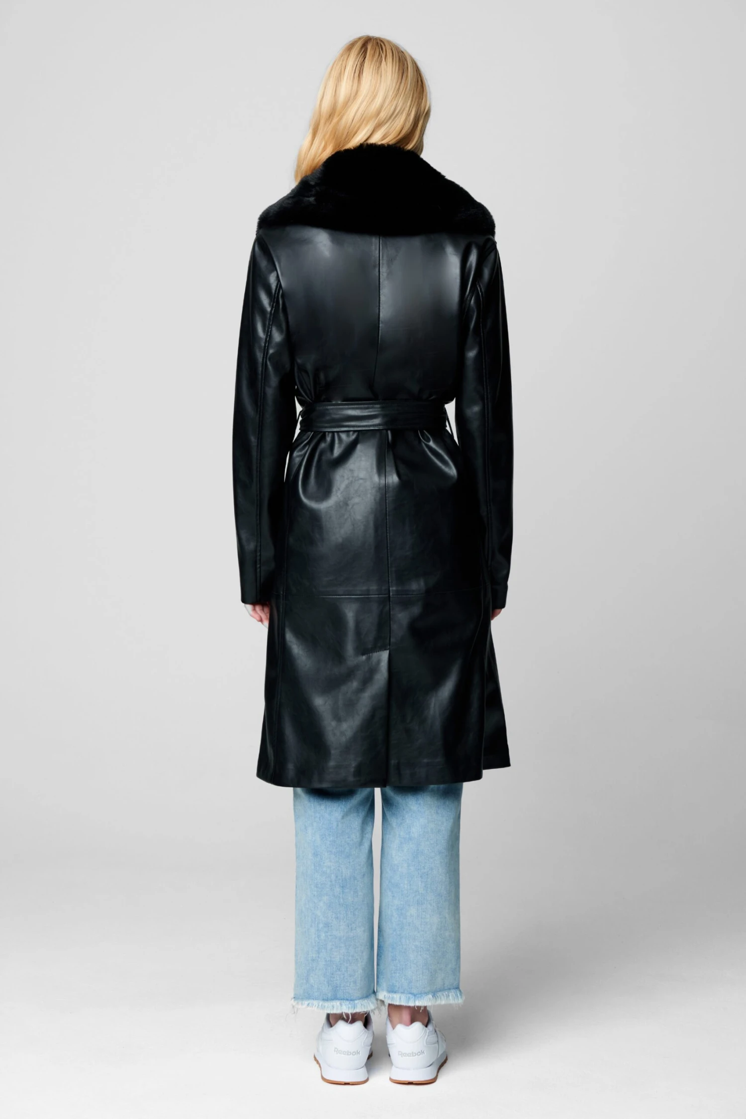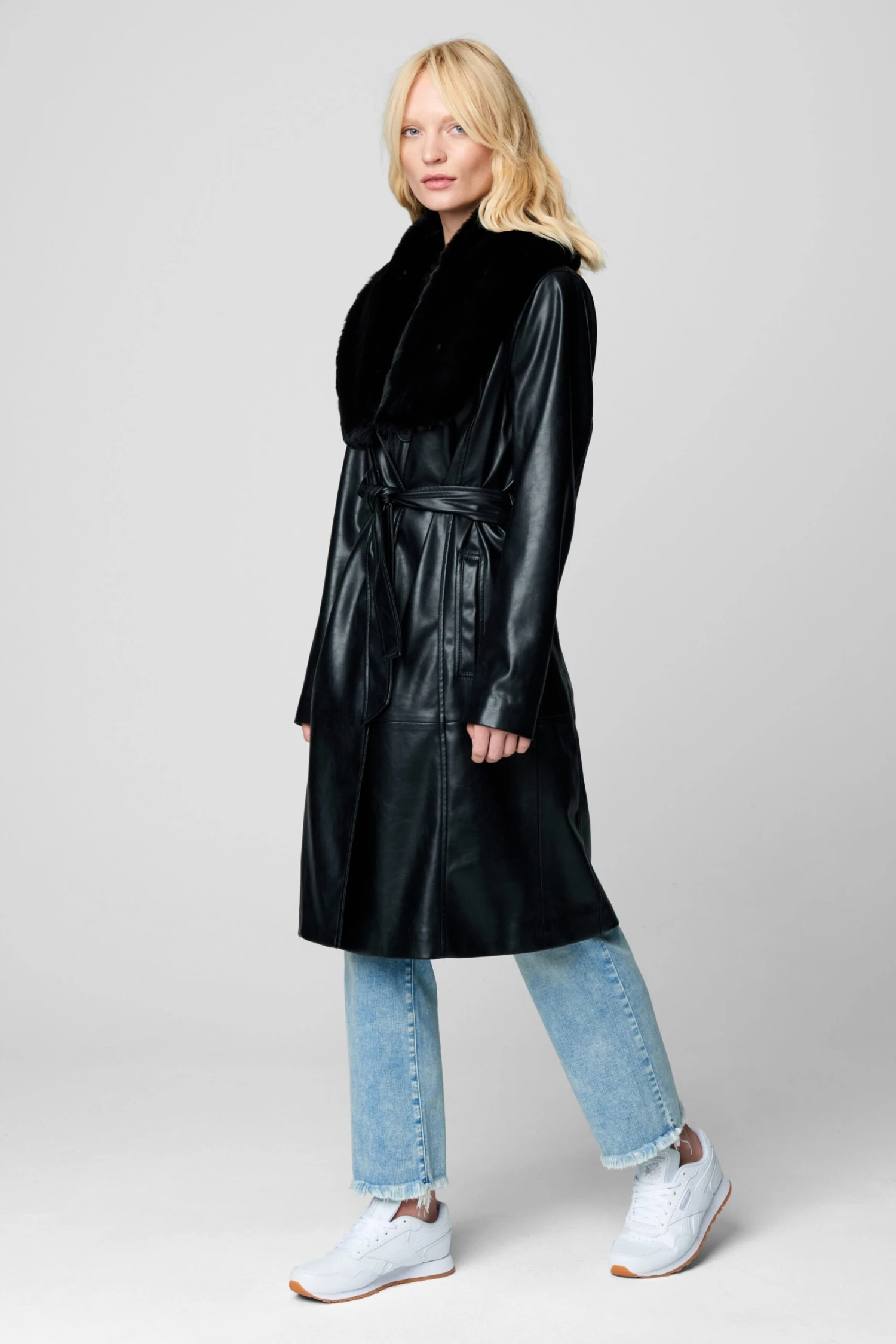 Vegan Leather Trench with Shawl Faux Fur Collar[60% Polyurethane, 40% Polyester][Hand Wash Only]