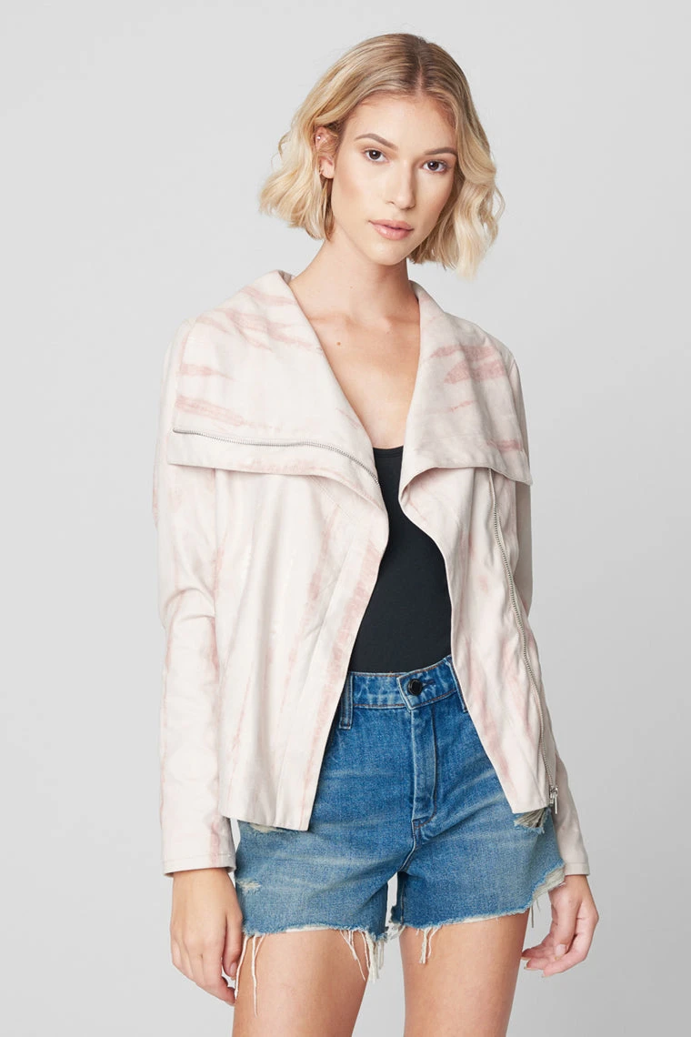 Cream tie-dye faux suede drape front jacket