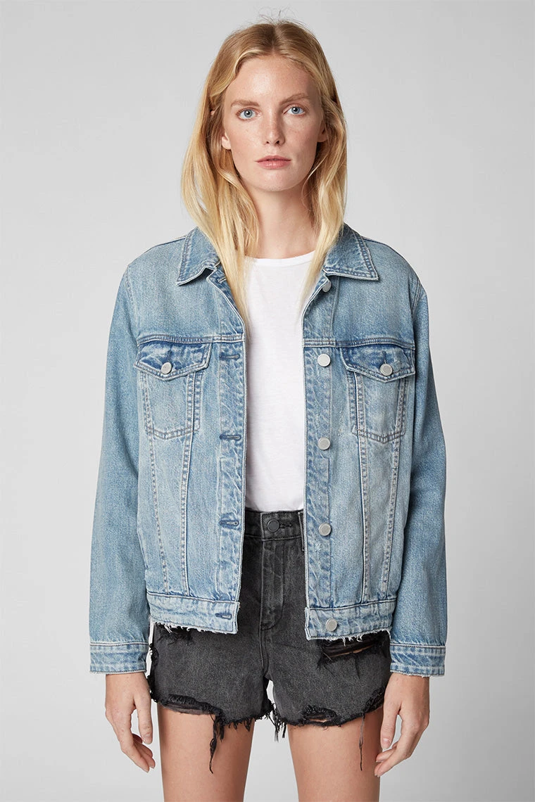 [100% cotton][Machine wash cold with like colors, do not bleach, tumble dry low, low iron.][Model measurements: Height 5’10.5 / Bust 32″ / Waist 24″ / Hips 33″][Size on Model: Small]Blank NYC Low Rider Jacket