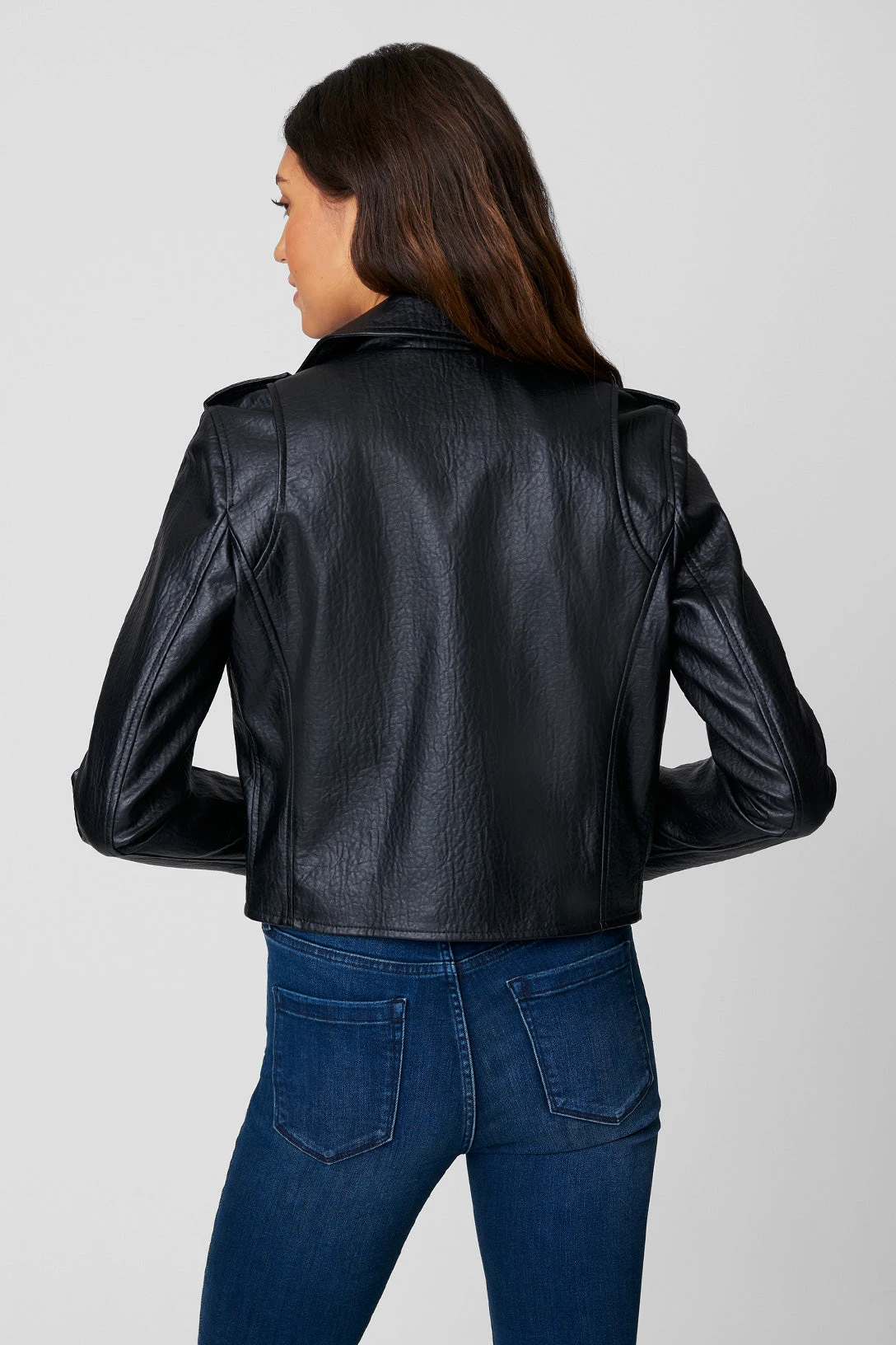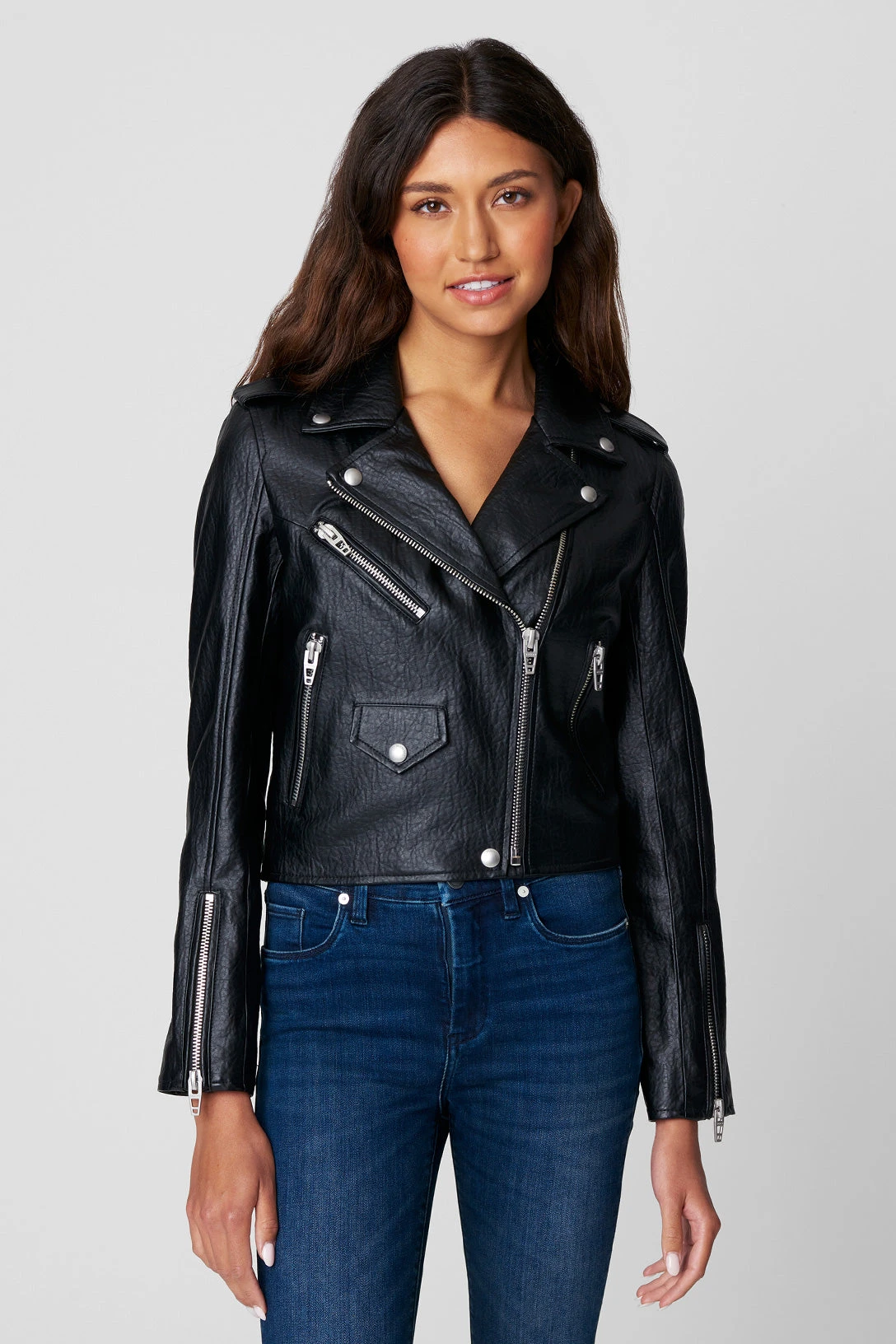 Vegan Leather Moto Jacket[Shell: 60% Polyurethane, 40% Viscose – Lining: 97% Polyester, 3% Spandex][Wipe Shell Clean With Damp Cloth, Do Not Machine Wash, Do Not Bleach, Do Not Tumble Dry, Do Not Iron, Do Not Dry Clean][Model Measurements: Height 5’9, Waist 27′][Size on Model: Small]