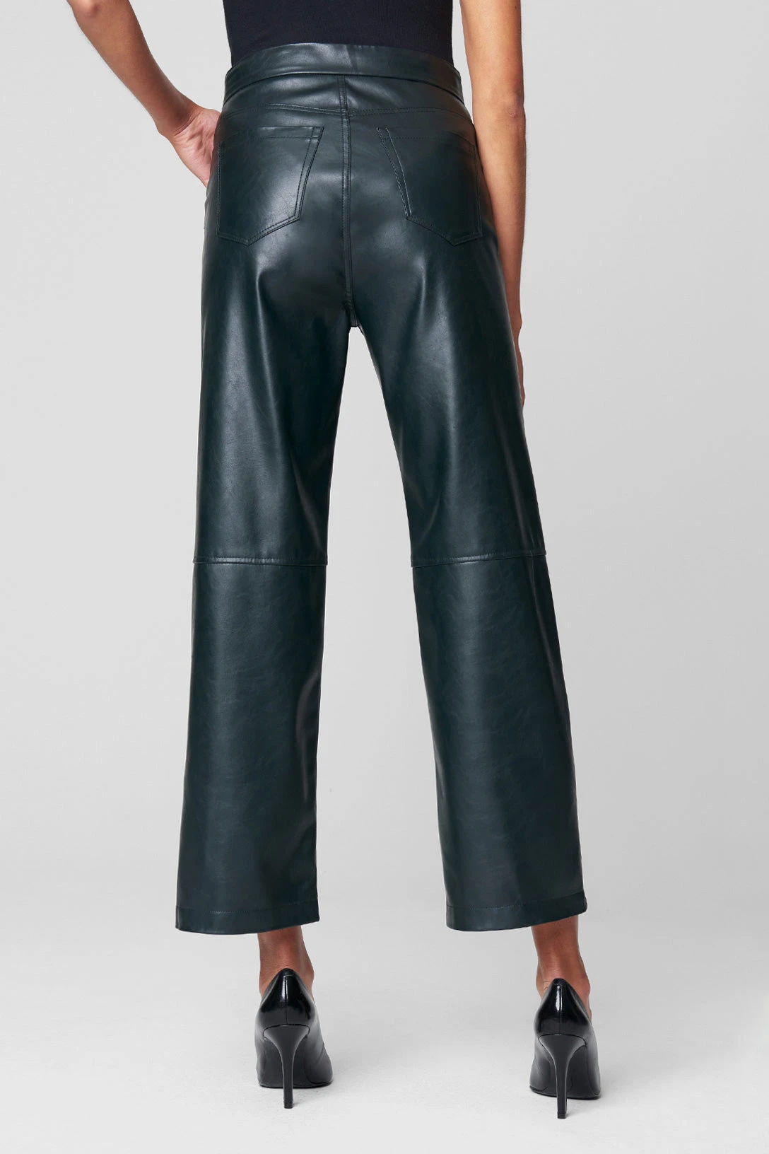 Vegan Leather Hi Rise Five Pocket Rib Cage Straight Leg Pant[60% Polyurethane, 40% Viscose][Wipe Shell Clean With Damp Cloth, Do Not Machine Wash, Do Not Bleach, Do Not Tumble Dry, Do Not Iron, Do Not Dry Clean][Model Measurements: Height 5’9, Waist 27′][Size on Model: 28”]