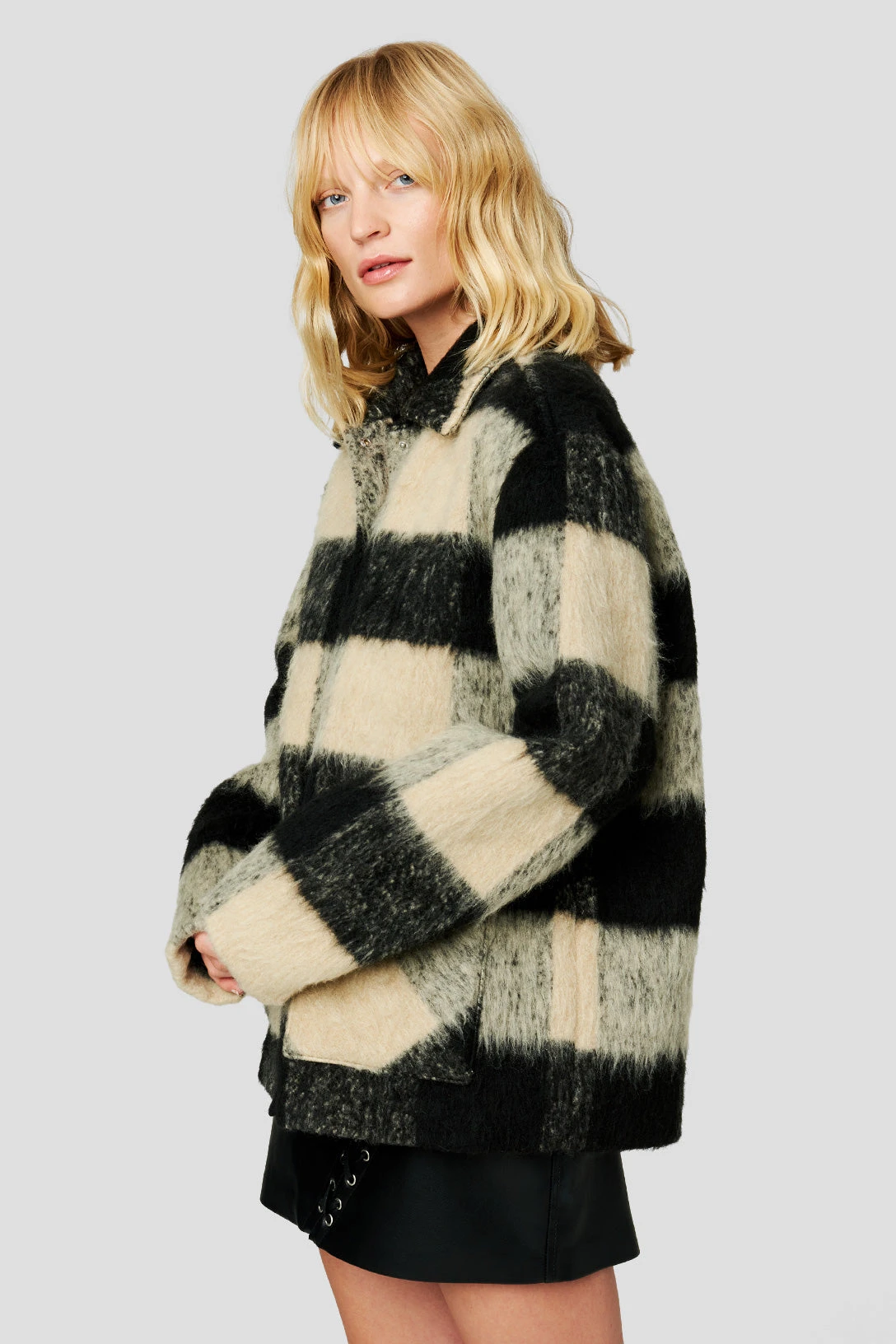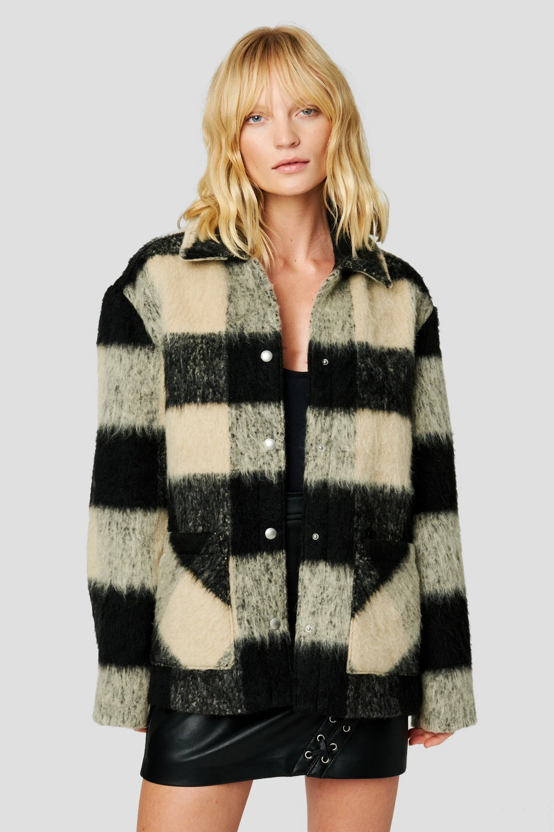 Oversized Plaid Shacket[80% Polyester, 20% Wool][Dry Clean Only][Size on Model: Small”]