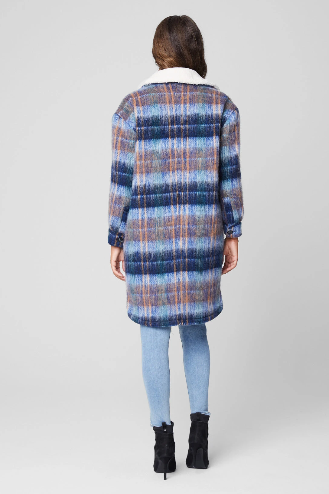 Plaid Long Shirt Jacket With Pocket And Faux Sherpa Collar[Shell: 70% Polyester, 30% Wool – Filling: 100% Polyester – Lining: 97% Polyester, 3% Spandex – Faux Fur Collar: 100% Polyester][Dry Clean Recommended][Model Measurements: Height 5’10, Chest 34″, Waist 24″, Hips 35″][Size on Model: Small]