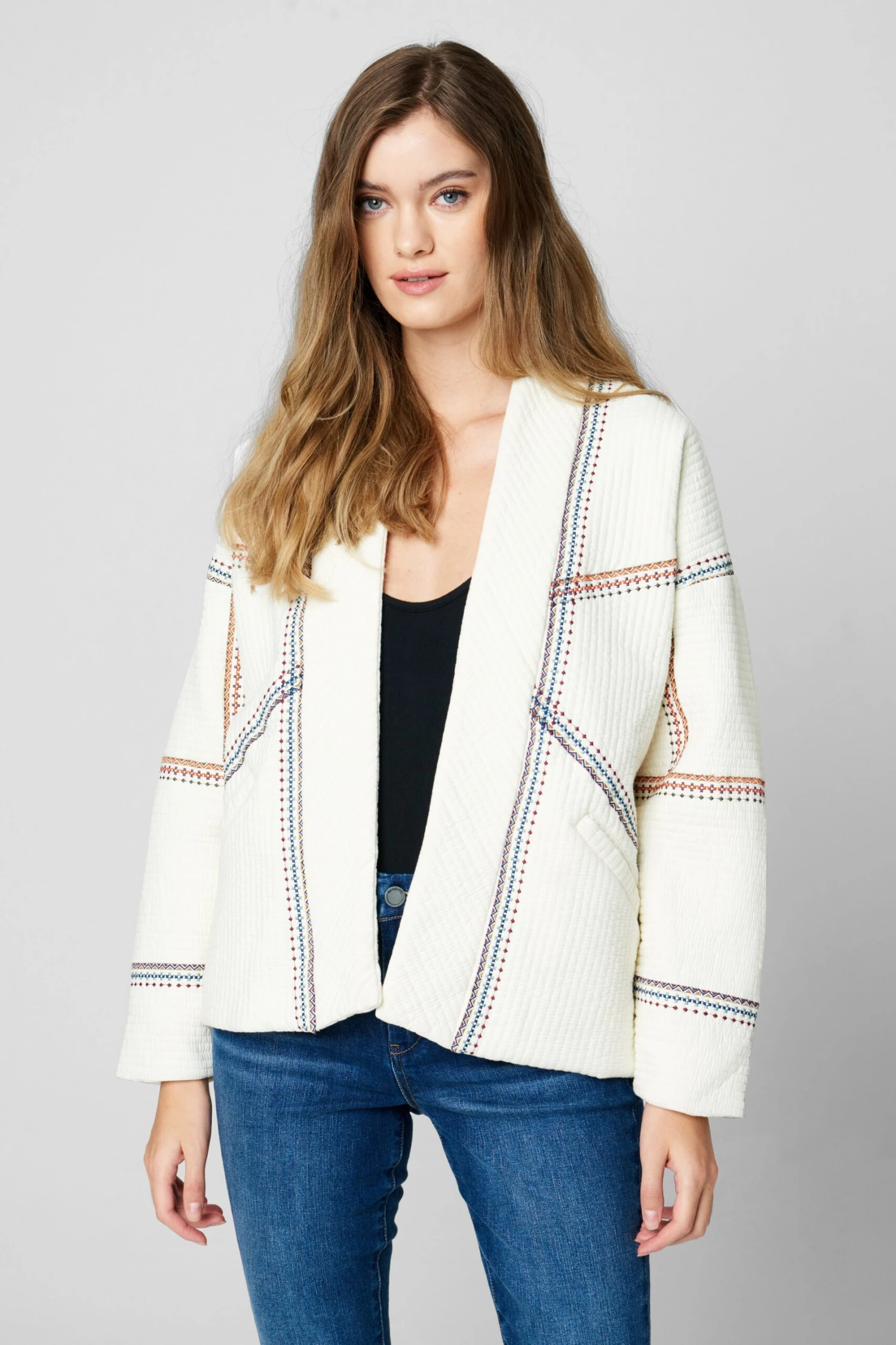 Quilted Embroidered Kimono Jacket[Machine Wash Cold With Like Colors – Do Not Bleach – Tumble Dry Low – Low Iron If Needed][Shell: 100% Cotton – Lining: 100% Cotton – Filling: 100% Polyester – Trim: 100% Polyester]