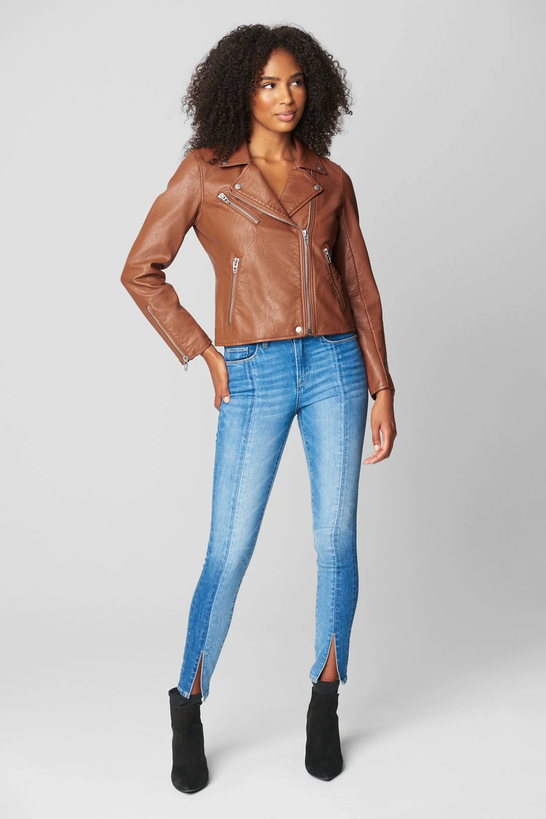 Vegan Leather Semi Fitted Motorcycle Jacket with metal hardware & zip sleeve detail