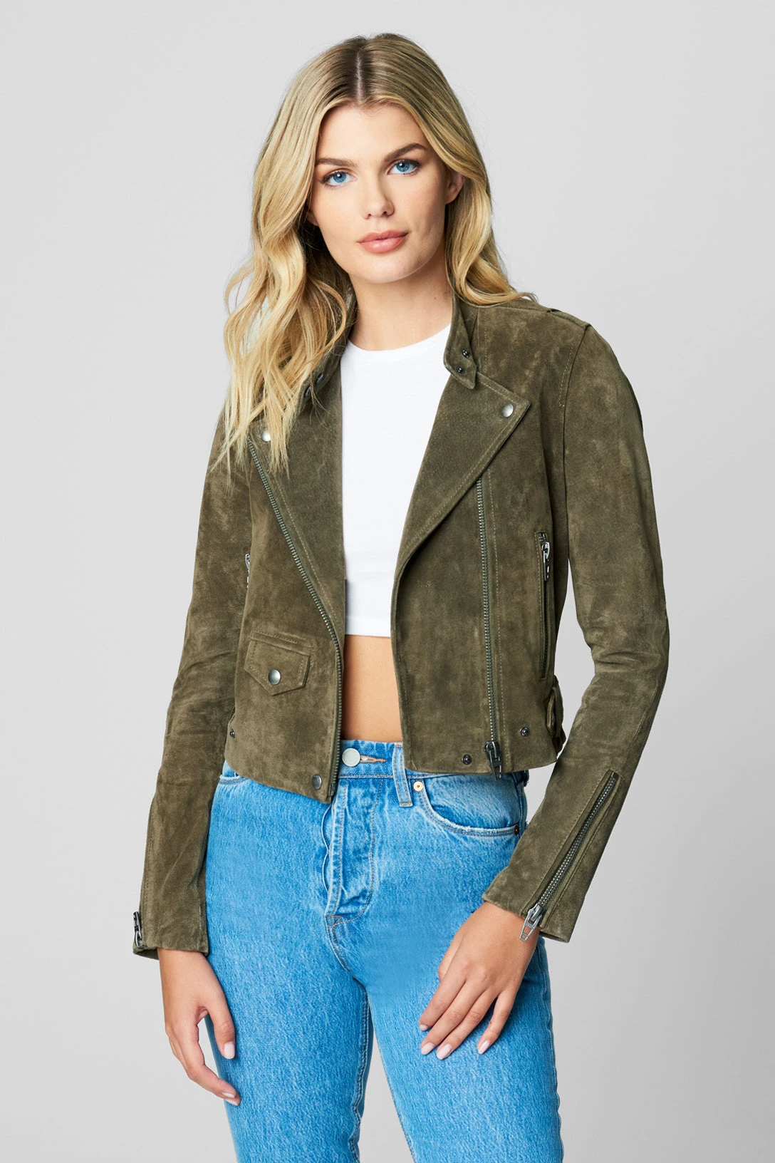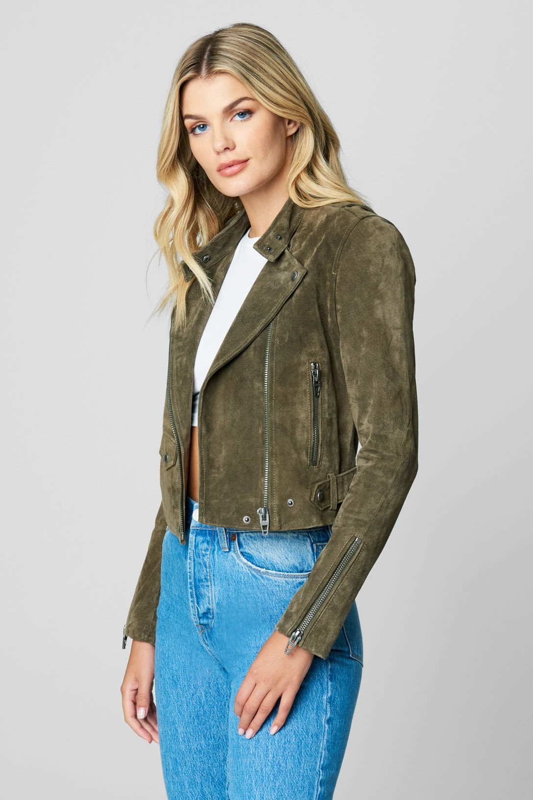 Belted Real Suede Moto Jacket[“100% Leather, Lining: 97% Polyester, 3% Spandex”][“Dry Clean Recommended Cleaning By A Specialist”][Model Measurements: Height 5’10, Bust 34B, Waist 24.5″, Hips 35.5′][Size on Model: Small]