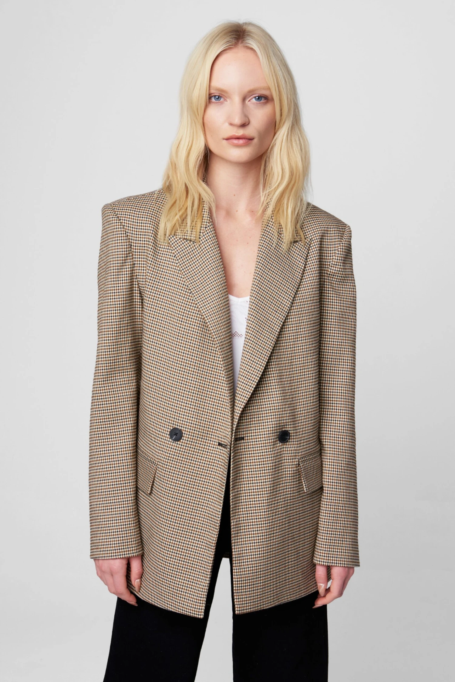 Plaid Blazer[98% Polyester, 2% Spandex][Machine Wash Cold With Like Colors – Do Not Bleach – Tumble Dry Low – Low Iron If Needed]