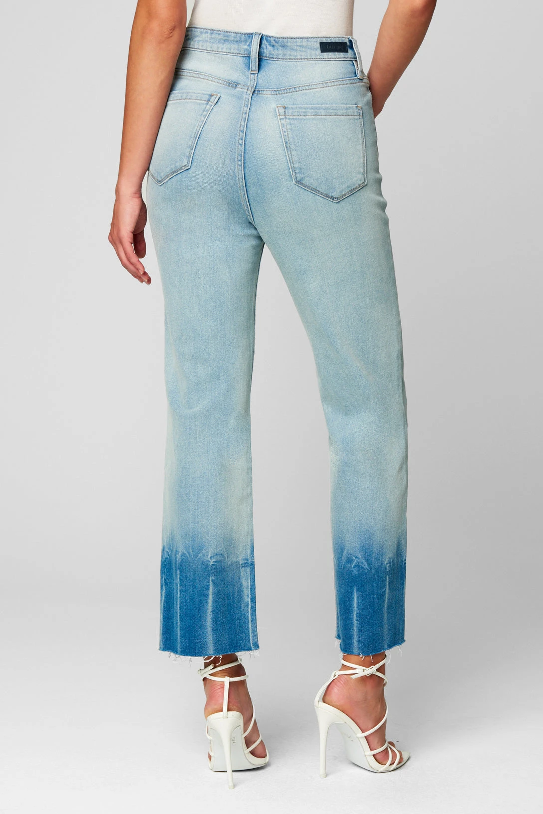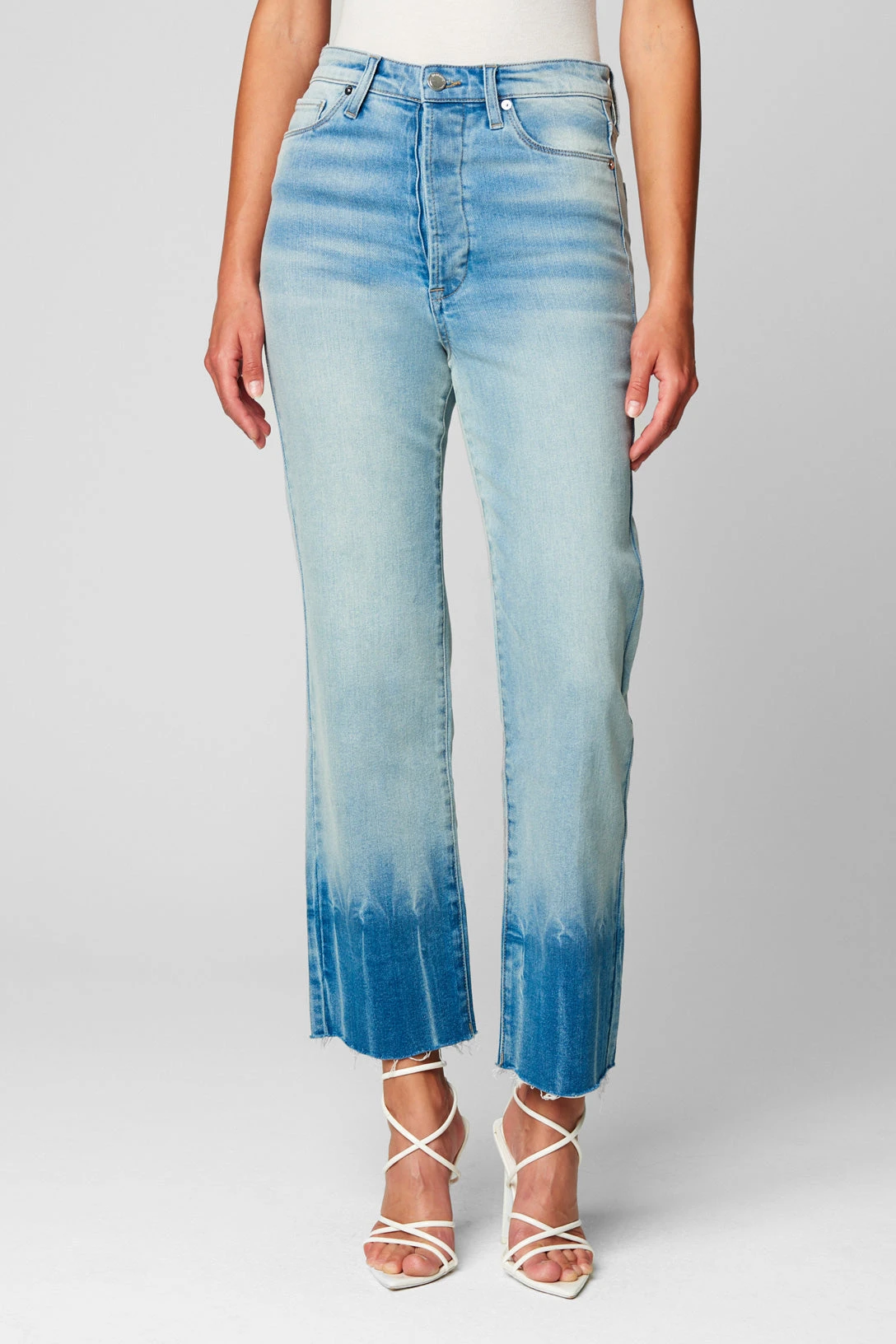 *SUSTAINABLE DENIM* the baxter ribcage jean with tie-dye hem[99% Organic Cotton, 1% Elastane][MACHINE WASH COLD WITH LIKE COLORS, USE GENTLE CYCLE, DO NOT BLEACH, TUMBLE DRY LOW, REMOVE PROMPTLY, LOW IRON IF NEEDED][Model Measurements: Height 5’9″, Waist 24”, Hip 34 1/2”][Size on Model: 28”]