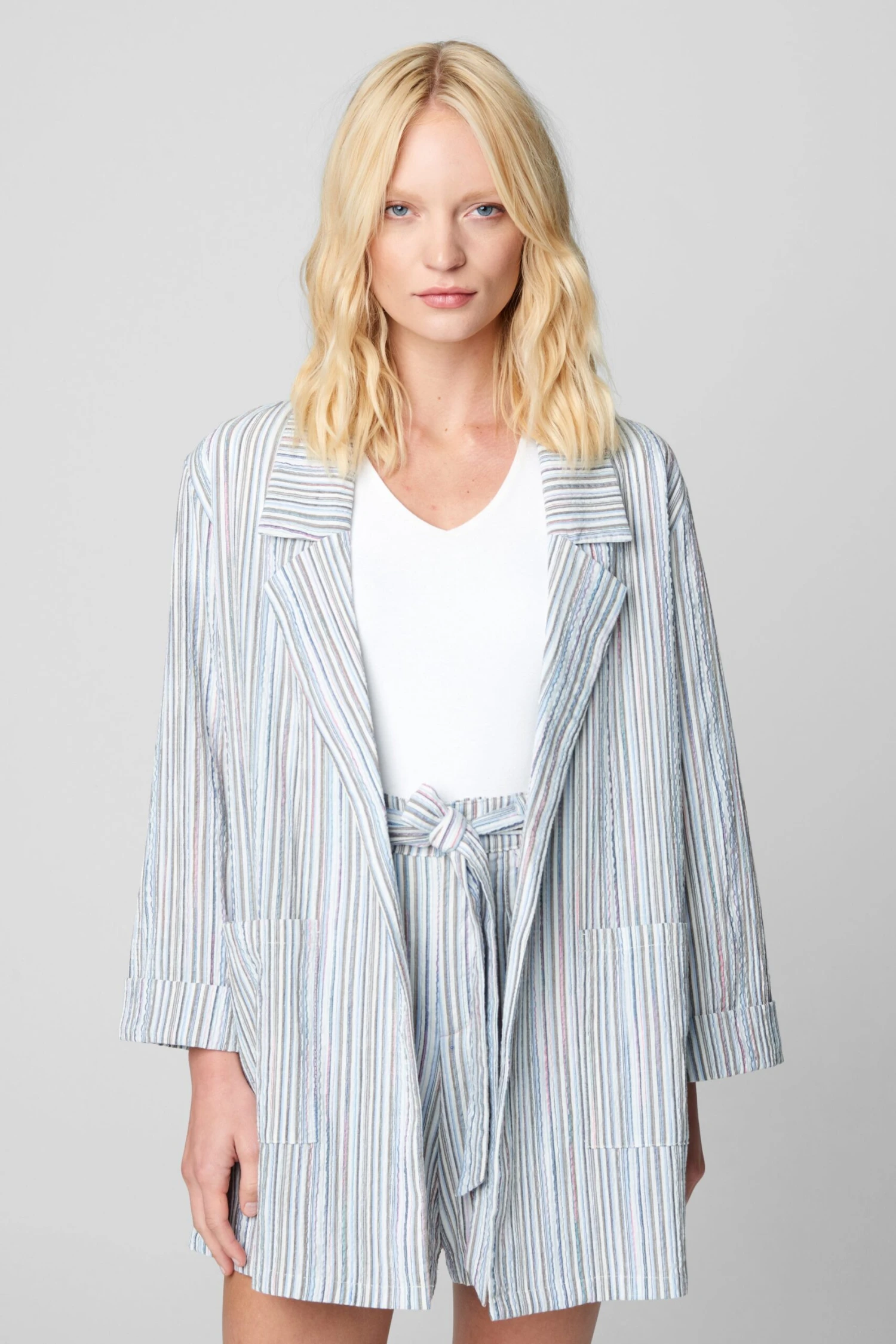 Seersucker Stripe Linen Blazer[70% Cotton, 30% Polyester][Machine Wash Cold]