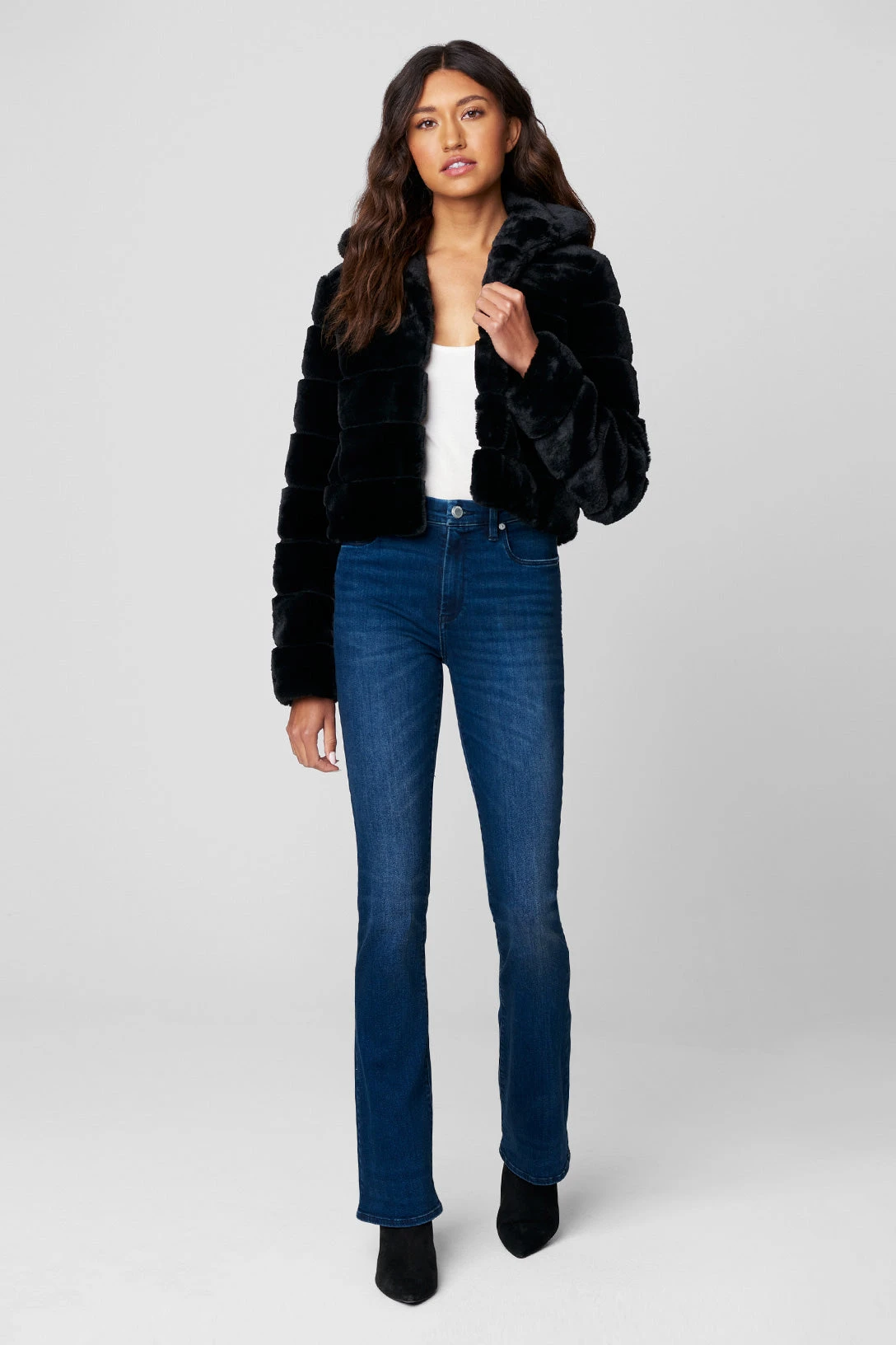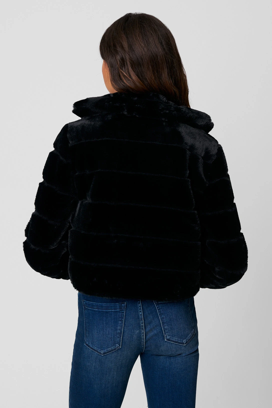High Collar Cropped Faux Fur Jacket[100% Polyester][Dry Clean Only][Model Measurements: Height 5’9, Waist 27′][Size on Model: Small]