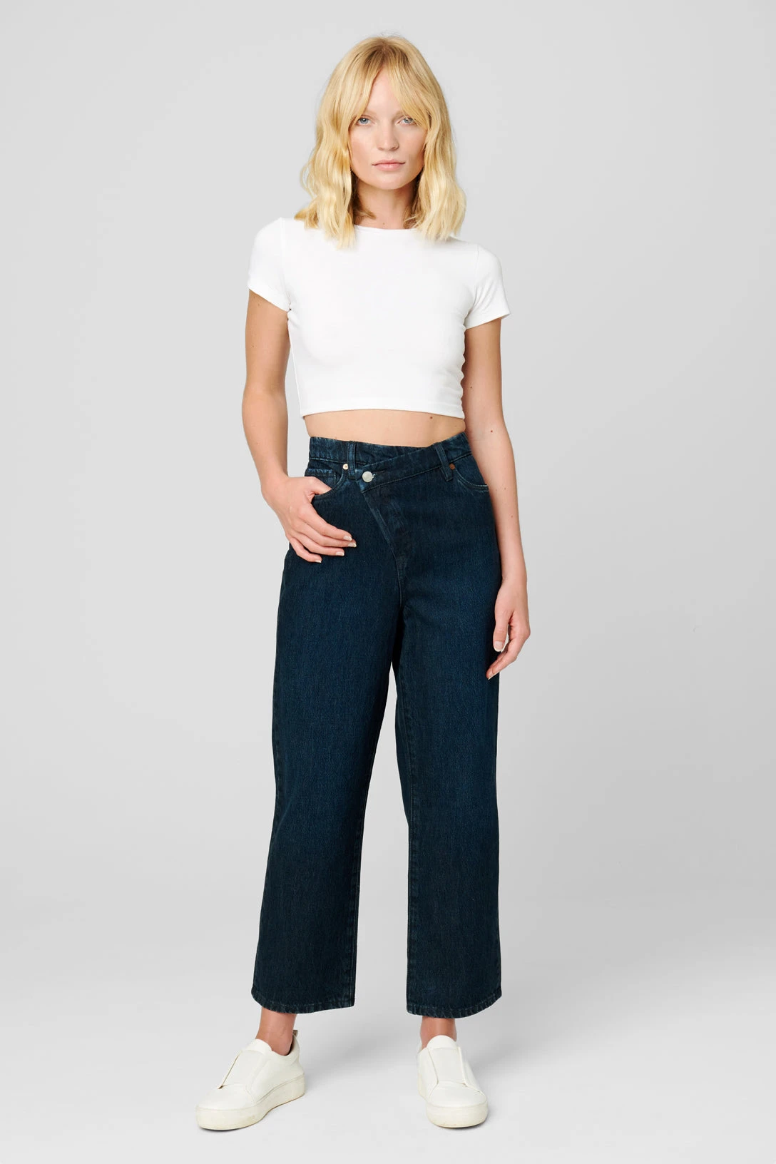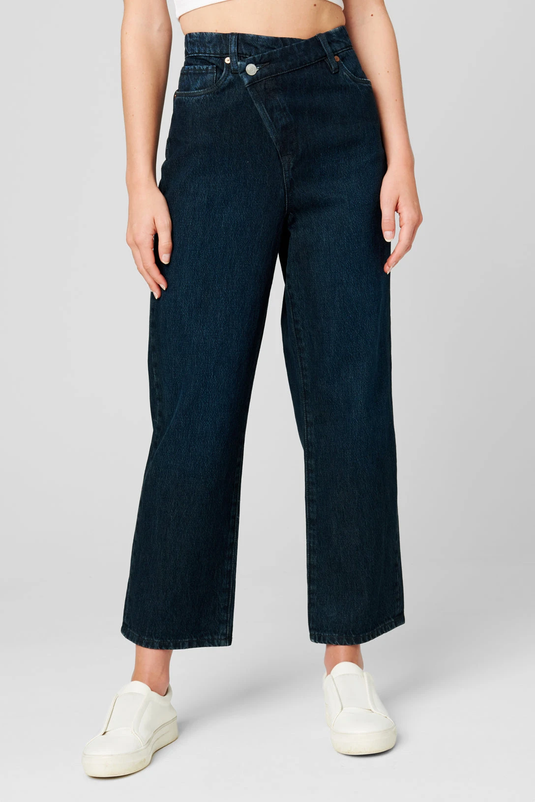 The Baxter Dark Indigo Five Pocket Straight Leg Jean With Overlap Detail[100% Cotton][Machine Wash][Model Measurements: Height 5’8 | 173 cm, Bust 30B | 76 cm, Waist 24″ | 61 cm, Hips 34′ | 86 cm][Size on Model: 28”]