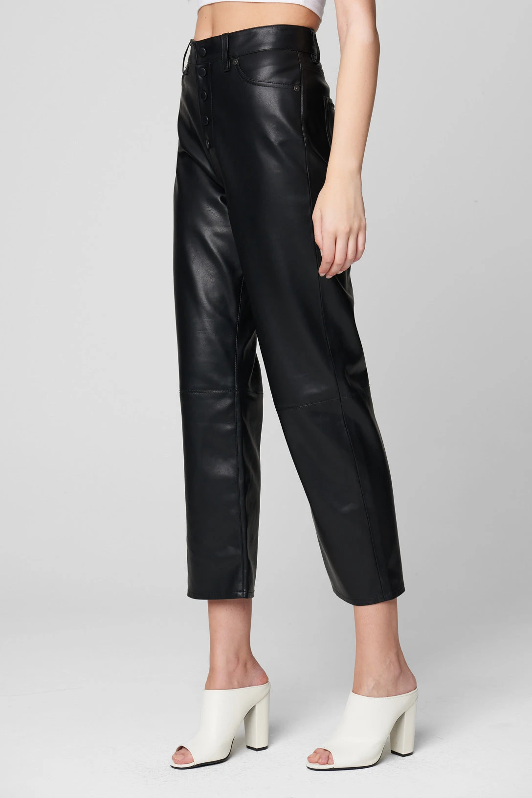 The Baxter Vegan Leather Rib-Cage Straight with Exposed Snap Fly[Shell: 55% Polyurethane, 45% Polyester][Wipe Clean With Damp Cloth Do Not Machine Wash Do Not Bleach Do Not Tumble Dry Do Not Iron Do Not Dry Clean][Model Measurements:Height 5’10, Waist 24′][Size on Model: 28”]