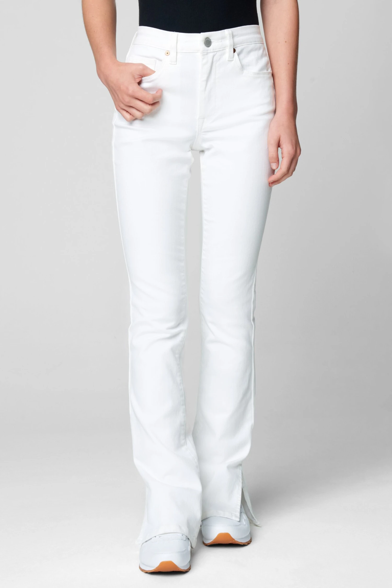 The Hoyt White Mini Boot Cut Pant with Side Slit[90% Cotton, 8% Polyester, 2% Spandex][Machine Wash Cold]