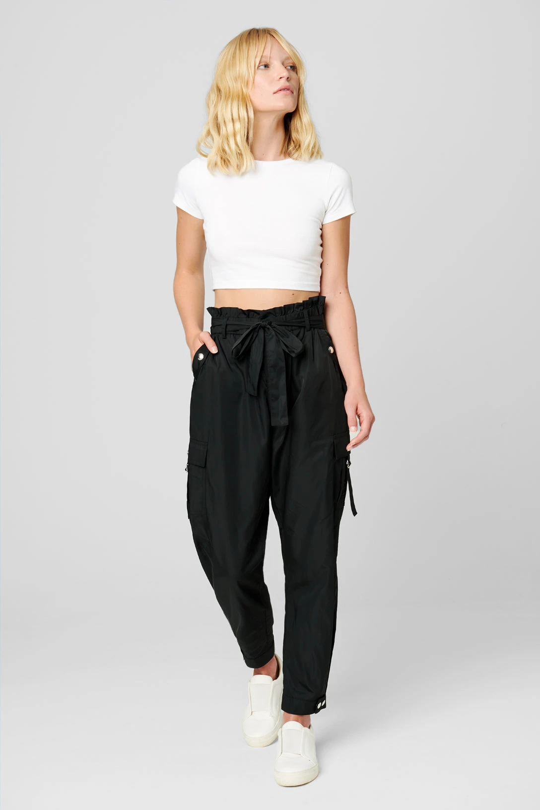 Nylon Paper Bag Pant[100% Polyester][Machine Wash][Model Measurements: Height 5’8 | 173 cm, Bust 30B | 76 cm, Waist 24″ | 61 cm, Hips 34′ | 86 cm][Size on Model: 28”]